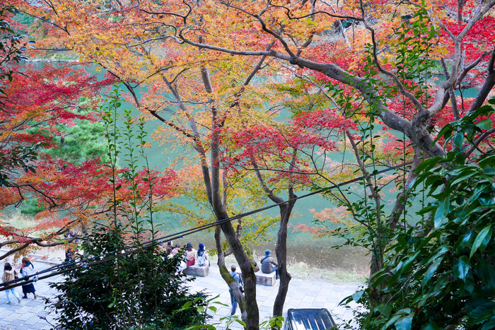 到大阪之后和神户的朋友约了出来玩,后来他们提议去京都看红叶,于是我们第二次去了岚山。碰巧赶上日本的祝日(节假日),渡月桥上人山人海。。。还好上了山之后就稍微松散了些。第一次来的时候早了,枫叶还没全红,这次却似乎有点晚了,很多已经落了。所以说看红叶这事情真是难以捉摸。。。