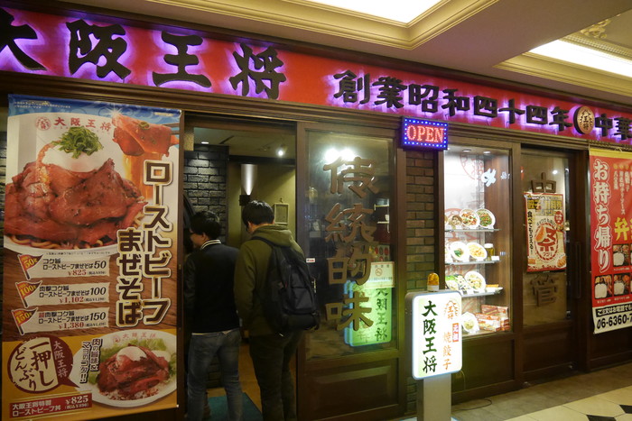 傍晚的时候天气冷下来了,就决定回去。日本的同学说要带我们去吃一家中华料理,说在日本算是很正宗的。虽然心里吐槽了下,我们来日本好像没必要吃中华料理嘛,但是也很好奇,就一起回了大阪去吃大阪王将。