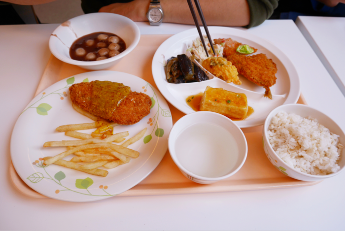 我们来的这个食堂是自助式的,自己拿菜然后称重,种类不算特别丰富,不过味道都很不错,尤其是红豆小汤圆,我后来一直念念不忘。打饭的时候感觉这也想吃那也想吃,拿了一大堆,还有一大碗拉面。大白先生惊诧的说,你怎么拿这么多,比我吃的都多。我立马觉得,哎呀,好羞涩,还有他同学在呢。。。于是赶紧把吃的转移到大白先生托盘里,以示清白orz 最后吃不完也是大白先生帮忙解决了,吃的好撑o(╯□╰)o