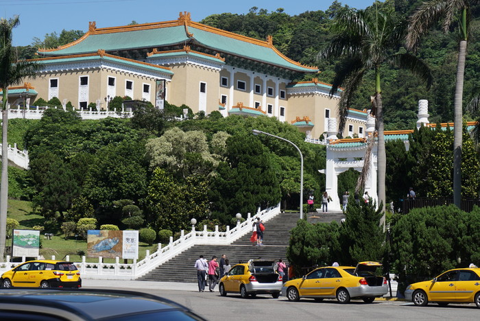 台北故宫博物院座落于台北市士林区至善路二段221号,建造于1962年,1965年夏落成。为仿造中国传统宫殿式建筑,主体建筑共4层,白墙绿瓦,正院呈梅花形。院前广场耸立五间六柱冲天式牌坊,整座建筑庄重典雅,富有民族特色。坐捷运淡水线到士林捷运站,然后可以转乘红30、304、255、815、小18、小19公车于故宫博物院站下车,也可以选择打车,费用大概110T左右。