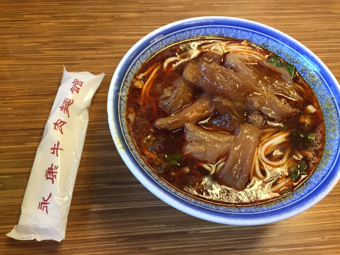 永康牛肉面感觉是台湾最有名气的牛肉面店,我去的时候门口无时无刻不保持着长长的队伍,大部分都是游客,后来听我的台湾朋友说,这家店是最有名气店但不是台湾最好吃的,牛肉面馆排名进不了前十,他们都不来这吃。我点了碗传统牛筋面,用料很足,牛筋很烂,入口就化,汤底有点辣,吃完后嘴巴粘粘的。价格260T,一个字贵。内地有很多牛肉面比这个好吃,个人感觉名大于实。