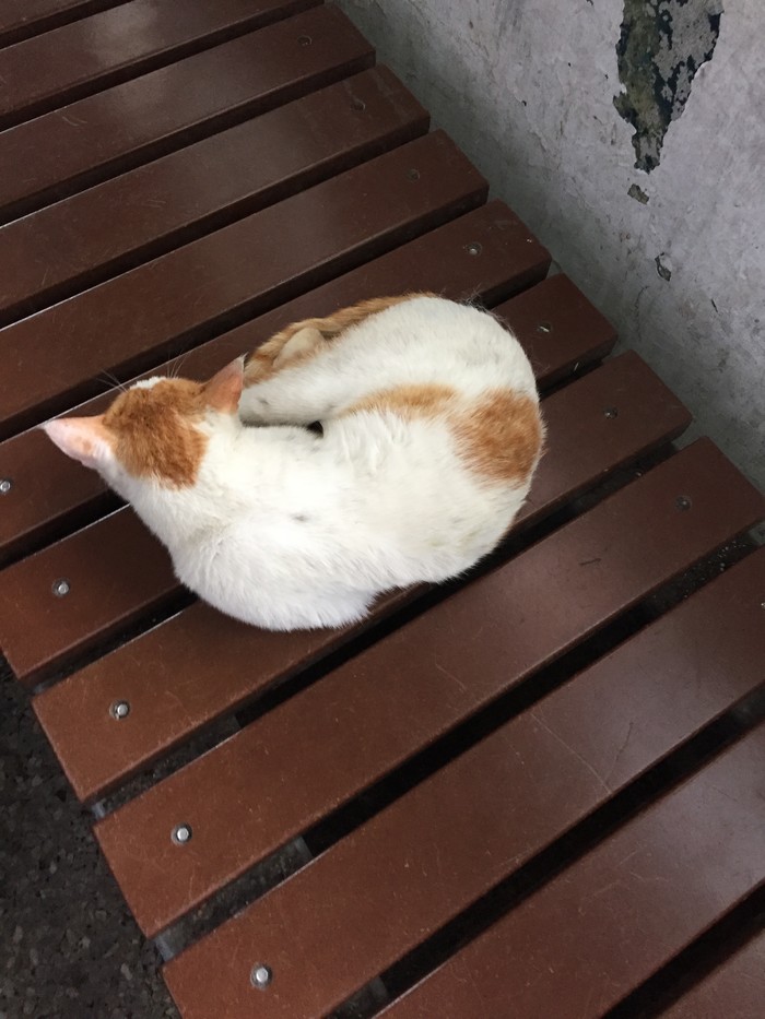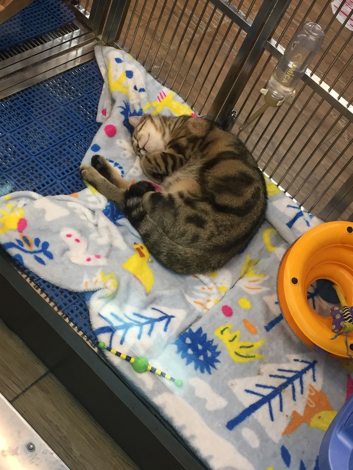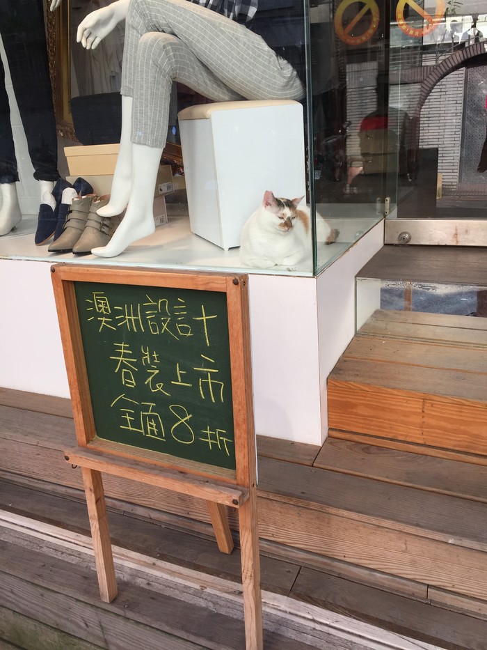 几道热菜下肚,时间已不早,沿着士林夜市逛到捷运站返回民宿,路遇一间宠物店,看见这只猫咪的睡姿真是萌翻了。