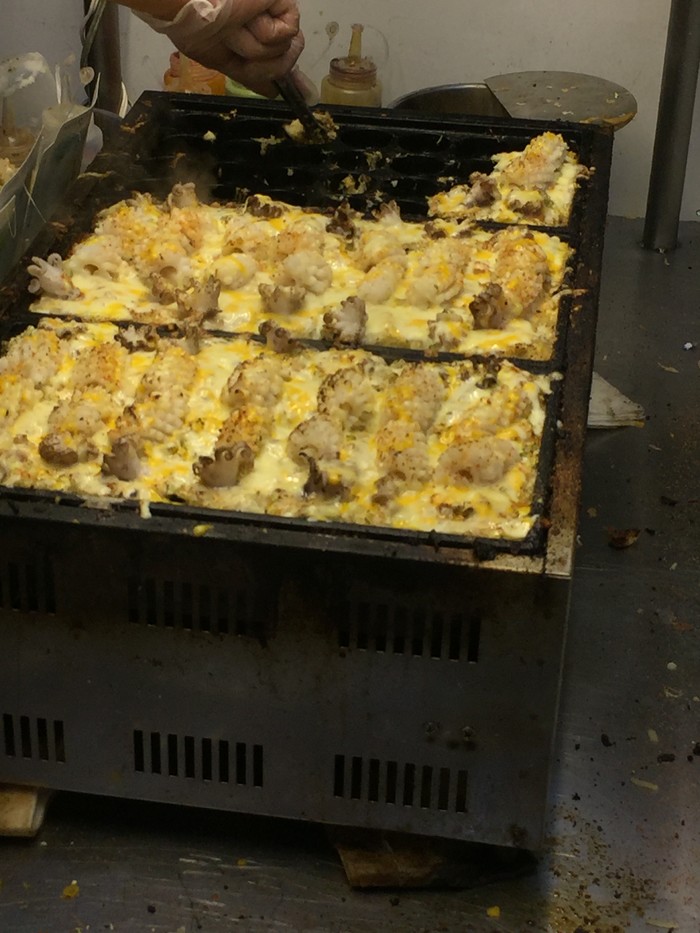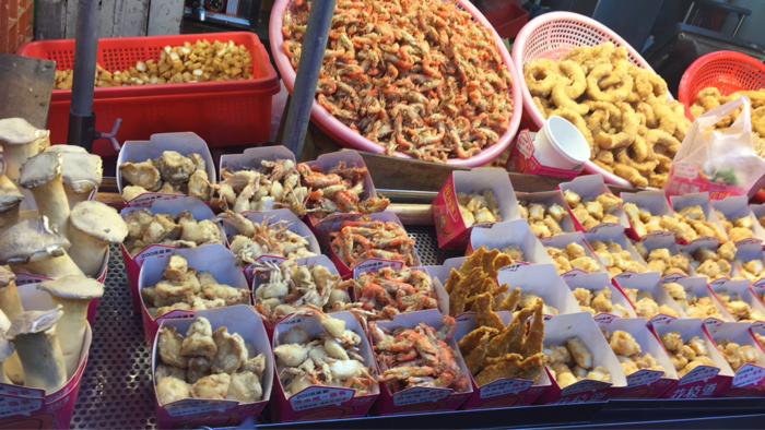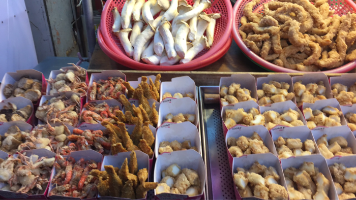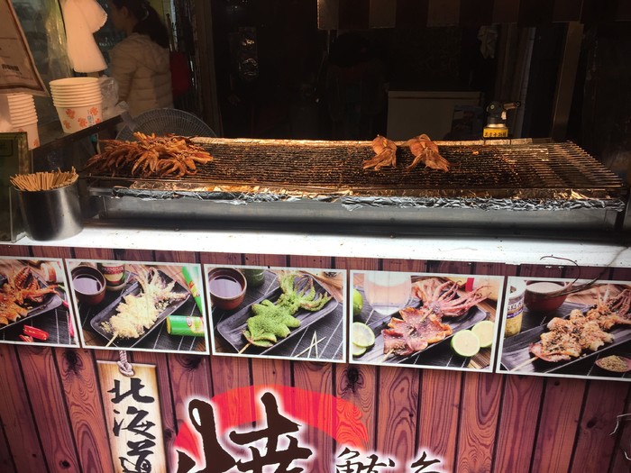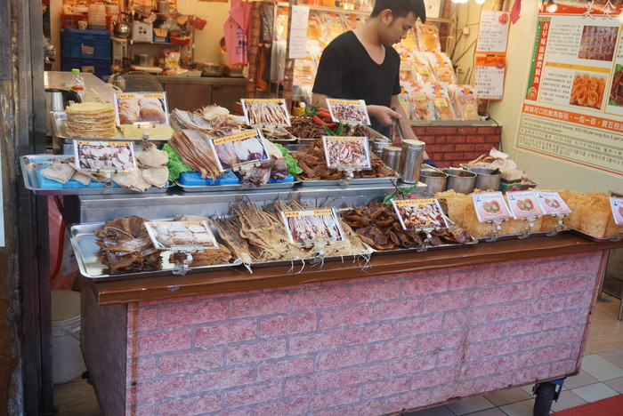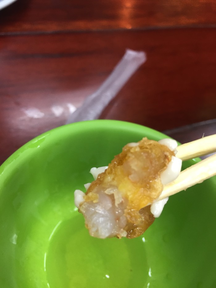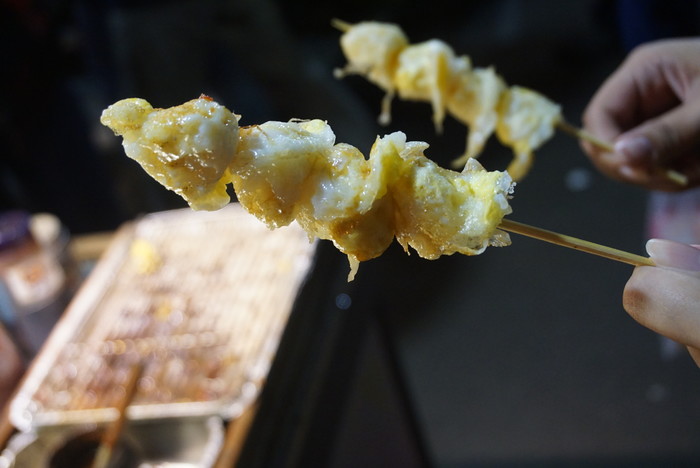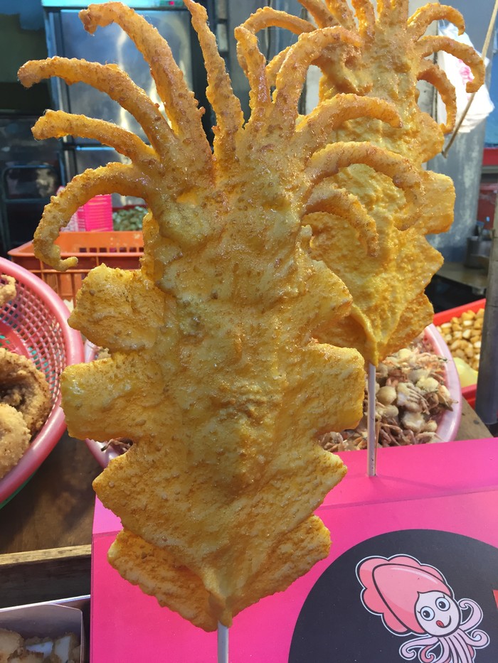 老街的各色小食品类繁多,让你目不暇接,无从下手,更何况口了,这也是我第一次在美食面前感觉到羞涩!外皮酥脆,肉质弹牙的轰炸大鱿鱼更是让我感到惊叹。一份炸河虾,一枝轰炸大鱿鱼下肚饱的像吃了三顿饭。