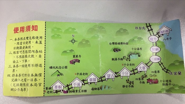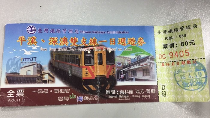 台铁相当于内地的普通火车,无需买票,刷悠游卡即可乘坐。台铁列车主要分为:自强号(停大站,速度快,票价稍贵,类似于内地的T开头的火车),莒光号(停站较多,速度稍慢,票价中等),复兴号(这个不推荐坐,相当于内地的绿皮车,太慢了,坐着难受)。在台北车站先买好平溪支线一日周游券,这样平溪,十分,猴硐等区间站可以随意上下无需买票。价格:80T。