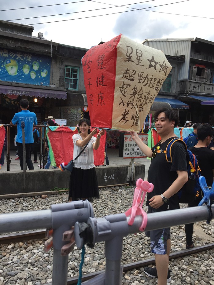 平溪的铁路沿着住宅而建,一边在铁路旁散步一边欣赏老街景色,也是一种游玩平溪的方式。据说这个地方一年365天有214天都在下雨,恰好我去的时候风和日丽,运气不错。