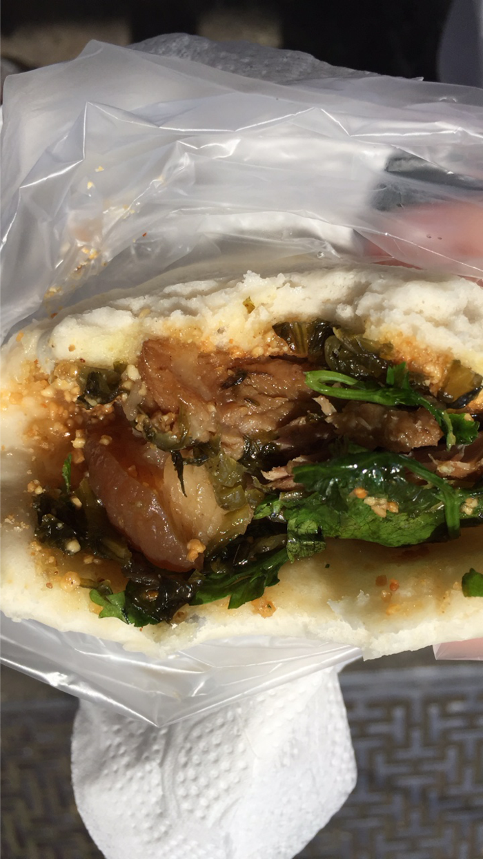 猪肉刈包俗称台湾“汉堡包”。传统刈包是用红椒、大蒜、海山碧等调料烧制五花肉并将其填进面饼,味道极其香浓。据说从前卤肉和酸菜很贵,台湾不少人家里比较穷,只有过年过节才能吃到刈包,因此刈包也象征着幸福的味道。正宗古早味刈包,要在巴掌大小的松软面饼中夹入片状的卤五花肉、酸菜、花生粉和香菜,咬一口外皮香甜松软、卤肉浓香嫩滑,爽脆的酸菜在提味的同时又中和了卤肉的油腻,嫩滑滋味美味无比!