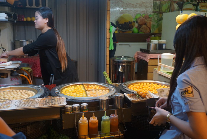 老街上,随处可见烤鸟蛋的小摊。小小的鹌鹑蛋配上干鱼淋上酱汁(辣酱),虽算不上绝美,但是别有一番风味!