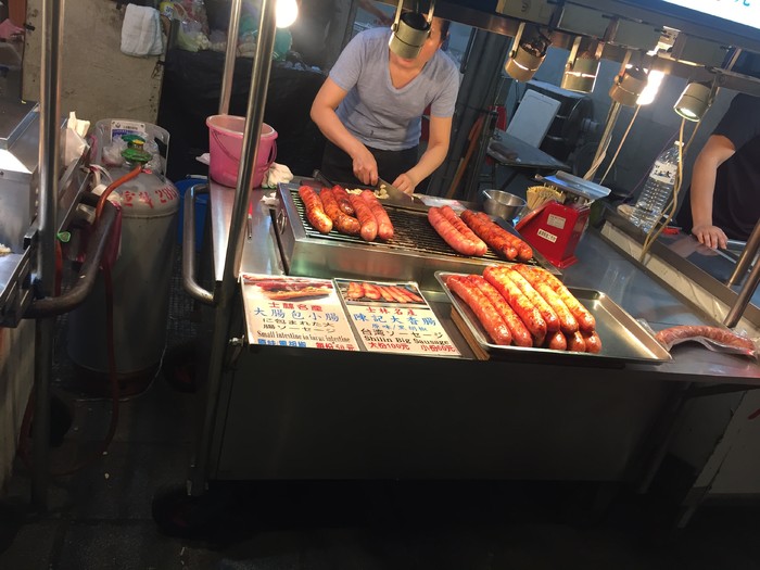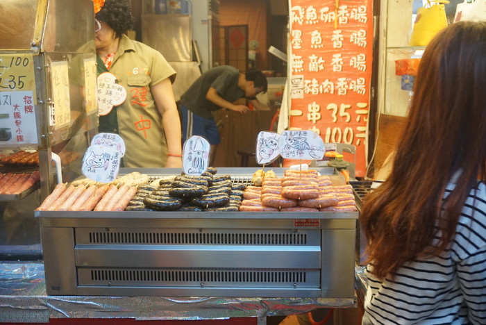 士林大香肠是士林夜市最著名的小吃之一,甚至可说是士林的名产,已有三十年历史的士林大香肠选用上等猪事腿肉,加入独家的调味,再以恰到好处的火候炭烤,保证绝对肉质香Q、咬劲十足。