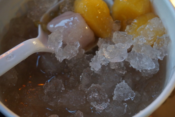 芋圆绝对是九份的最经典美食甜品,店里保留着原始的模样,所有的芋圆都是阿姨手工制作,有地瓜圆、芋圆、绿豆圆三种口味。冰的热的都有,吃起来爽口弹牙,唇齿留香。美味的甜品搭配小镇的风情,别样的生活小幸福!