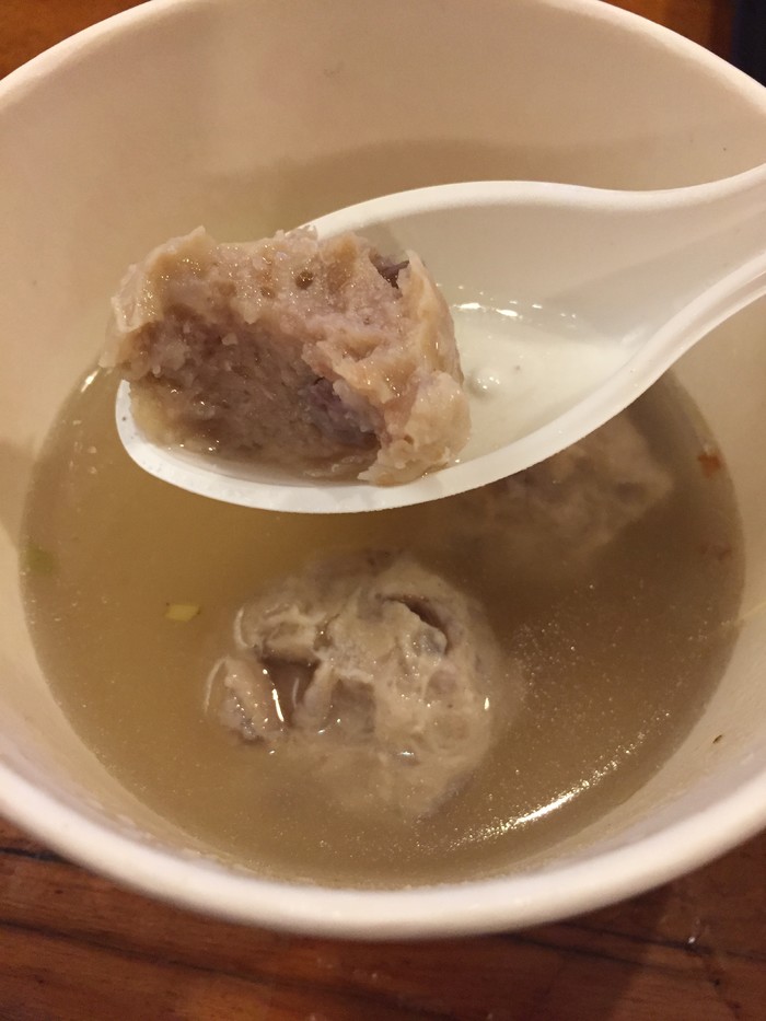 芋脚丸和内地肉丸很像,吃起来劲道加上里面夹杂了芋头、粉粉的,配上鲜美的汤头,不言而喻的美味久久难以忘却。红糟肉圆45T/粒,一份芋脚丸汤45T。
