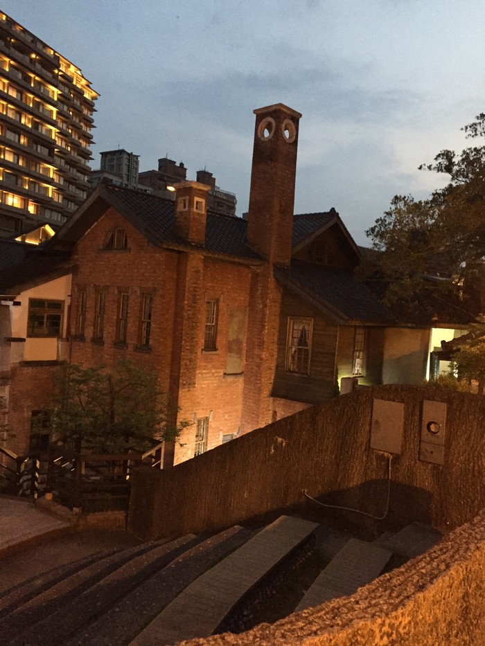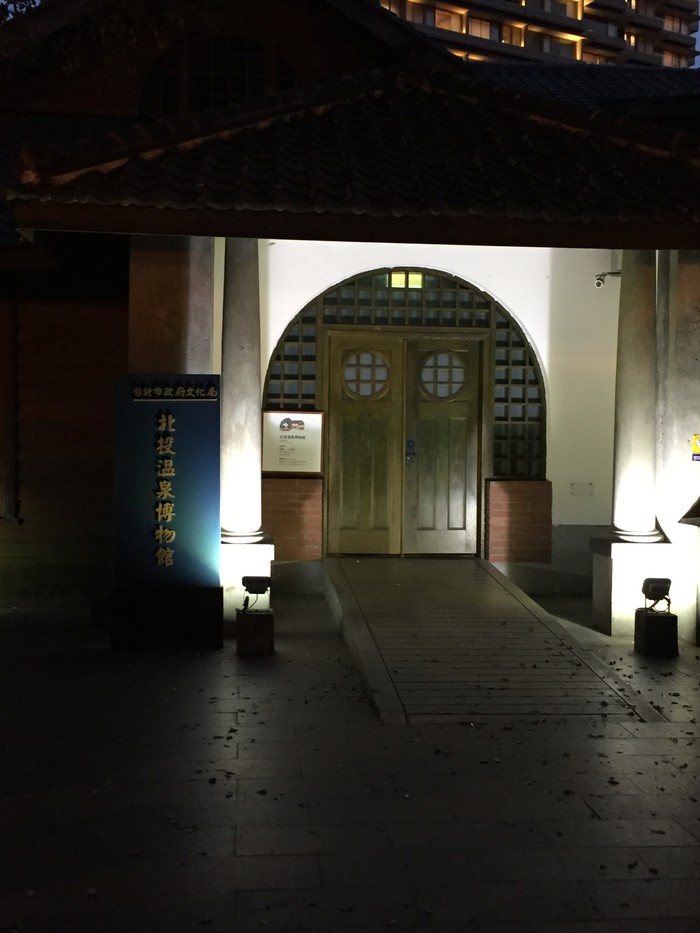 在西门町没有买到奶粉,直接坐捷运准备去新北投泡汤放松放松。捷运淡水线北投站,然后转到新北投的车。刚到新北投,朋友打电话说要晚上吃个饭,然后我就随意的逛了逛。来的时候时间都过了下午六点,温泉博物馆跟地热谷都闭馆了,就只在门口转悠了一番。