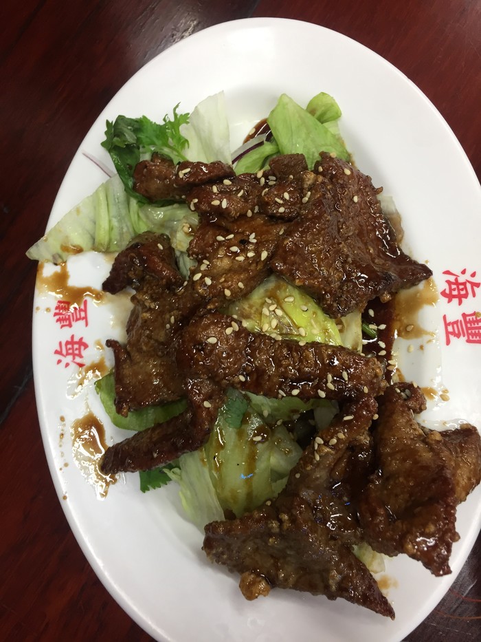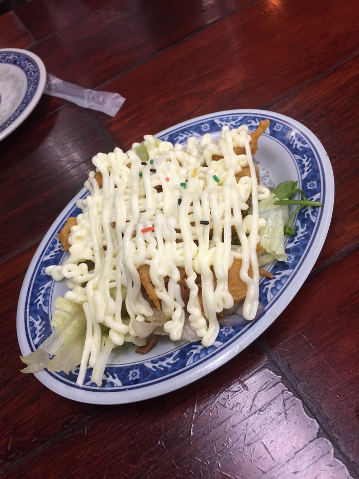 南煎猪肝,我第一次吃到这种做法,听说福建一带都很盛行。猪肝也是外焦里嫩,台湾很喜欢油炸食物,甜甜的,酸酸的,感觉就是一盘糖醋猪肝,哈哈。