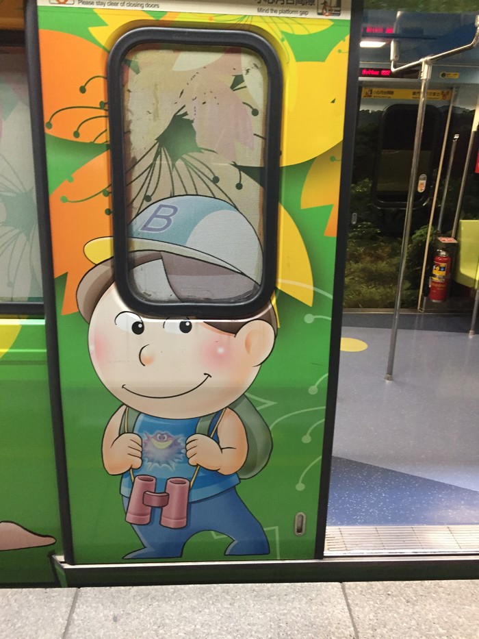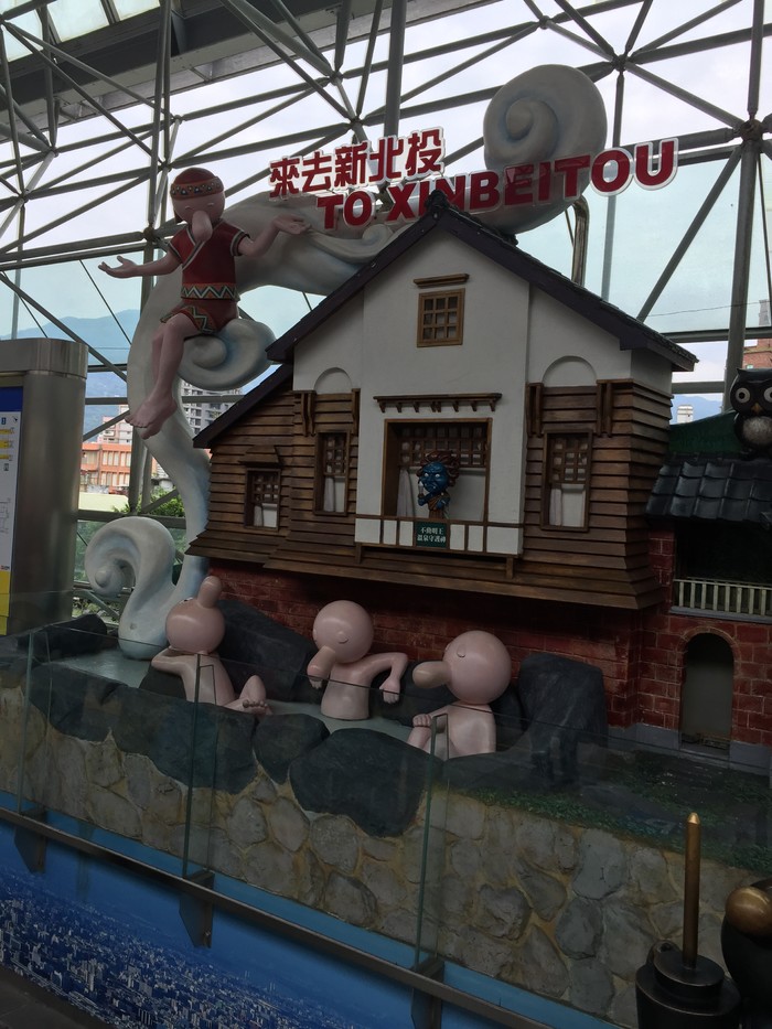 因为我是第二天早上7点的飞机,所以今晚得去机场过夜了。今天的天气依然很不错,睡了个懒觉,起床后收拾行装,中午12点离开的民宿,和房东Jordan道了个别,准备去新北投泡汤,放松放松放松。捷运淡水线北投站转车去新北投。北投到新北投就一个站,都是彩绘列车,超可爱。