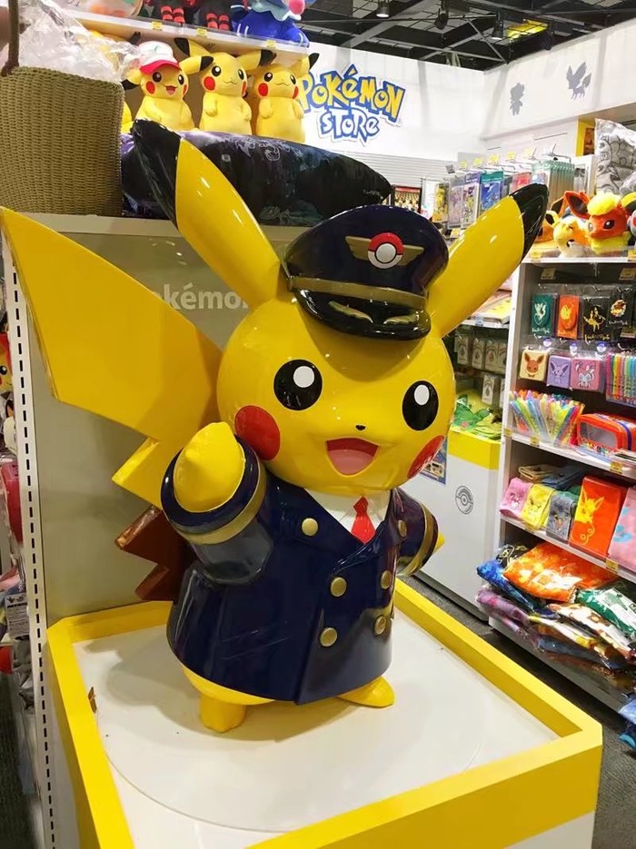 机场三楼是美食街,我们差不多中午到达的,于是在这边吃了一个便饭,三楼还有一家口袋妖怪专卖店,就在两个美食街的中间,门口摆放的穿着机长制服的皮卡丘实在的太可爱了,害得我差点忍不住就要在这边先把它抱回家。