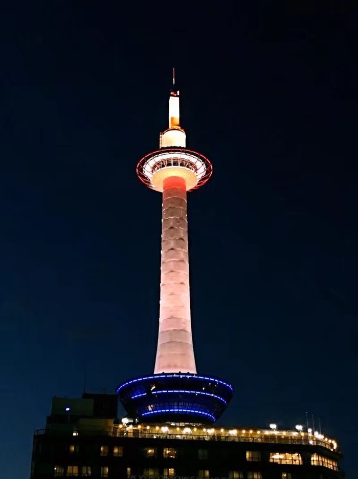 关西机场到京都要多久时间我已经不记得了,因为一路上都在看沿途的风景,抱歉抱歉。到达京都站后,我们很顺利的就找到了我们的酒店---京都新阪急酒店,选择这边的理由就是因为环境好,正对京都站,出门对面就是京都巴士总站,还有一个伊势丹可以逛逛,地下还有个地下购物街,后面有一家YODOBASHI,旁边就是京都塔,出行、购物、吃饭都超级方便。酒店办理完入住手续、放好行李,我们就开心的出门去熟悉周边环境了。当晚我们本来要去伊势丹楼上的拉面小路吃饭的,后来因为我搞错了楼层,就随便找了一家来吃,虽然是随便找的,但是也很好吃,还碰到了一个帅气的服务生小哥,及其神似SMAP的某成员,后来在电视里面看见明星本人,还是觉得他俩站一起会傻傻分不清啊。咳咳,回归正题,拉面小路在伊势丹10楼,在10楼,在10楼,重要的事情说三遍。(这算是本次旅游的一个遗憾)吃完饭我们闲逛了下地下的购物街,买了点FANCL,吃了个抹茶冰淇淋,拍了下京都塔夜景,然后就愉快的回酒店睡觉去了。第一天就这样欢乐的结束了。(我们这次虽然安排了一天时间用来购物,但是还是在每天的闲逛中积累了要买的东西,这样也不至于在最后购物那天会太累。)