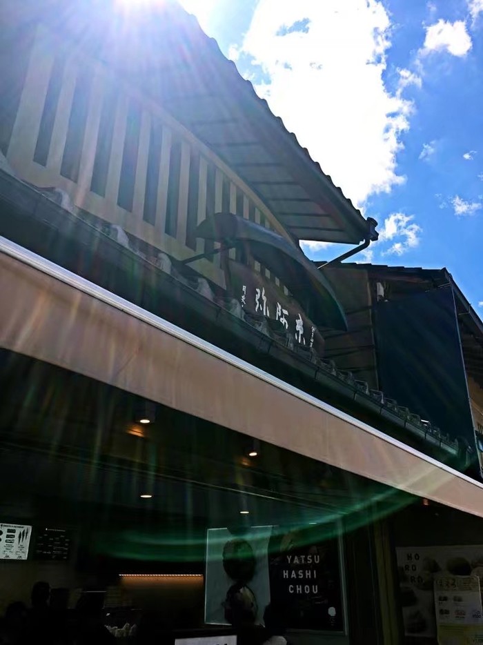 总算知道京都的和果子为啥都那么甜了,因为是要配合茶一起的,茶很苦,就把点心的甜就综合掉了。