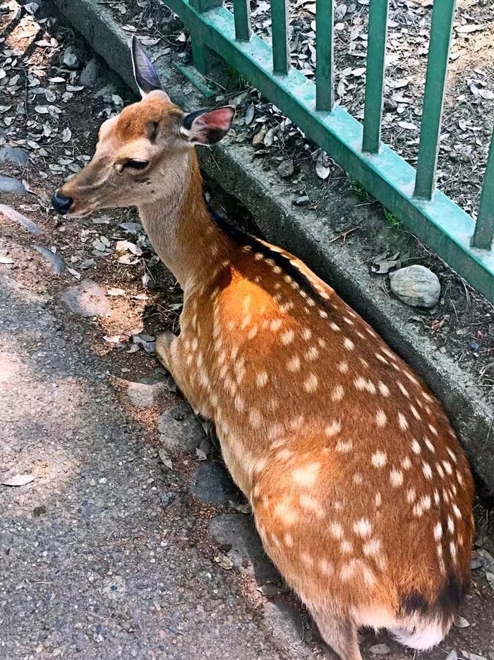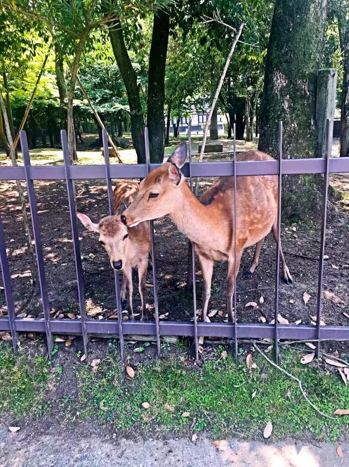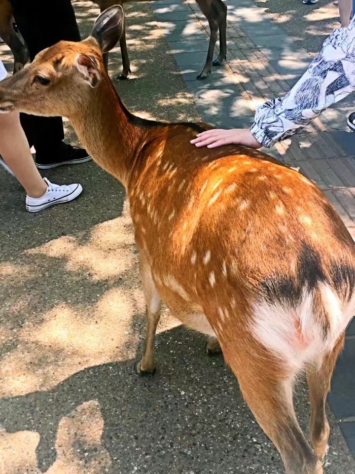 说道奈良,大家肯定想到了小鹿,没错,去奈良就是为了拍小鹿的,去了之后才知道,大多数都是大鹿,不是小鹿,温顺的少,活泼的多,一看见你手上拿着小鹿饼就会围上来,你把饼放身后,它们就会给你鞠躬示好要饼吃,如果这个时候你再不给,就等着被咬吧。奈良公园很大,近铁奈良站下来走一会儿就到了,先看到的是兴福寺,就进去参观了下,拜了一拜,一路上已经能看到很多小鹿了,特别是在卖小鹿饼摊的附近特别多,样子看起来都萌萌哒,特别无辜,但是抢食物的时候可凶了,为了我自己的人身安全,我和闺蜜都选择了围观,不喂鹿。
