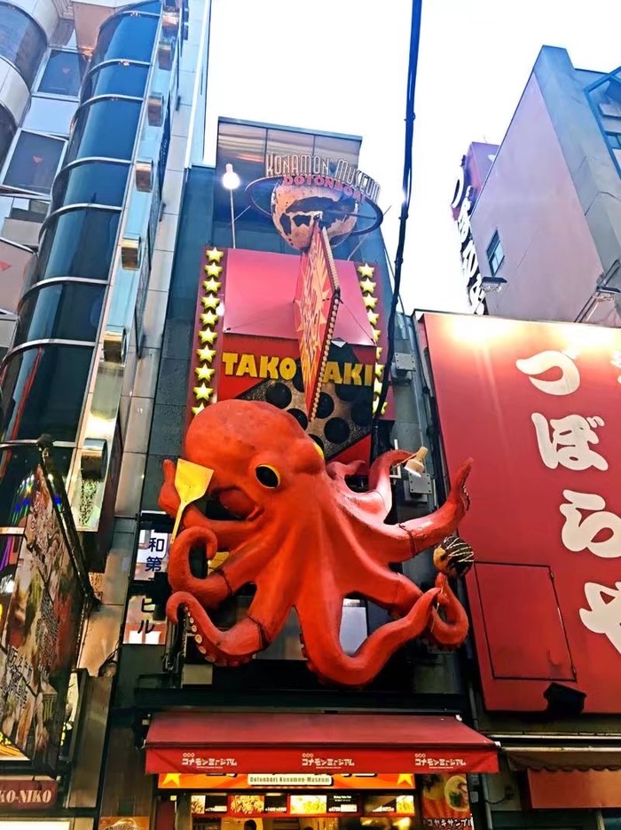 摩天轮下来后,原来计划做观光游船的,后来怕晒,我们就放弃了,回戎桥那边觅食去,因为不是很饿,我们就吃了王将饺子和章鱼小丸子,王将饺子说实话不是很好吃,绝对没有我们上海的锅贴美味,章鱼小丸子就外面的外壳太软了,里面还是很好吃的。