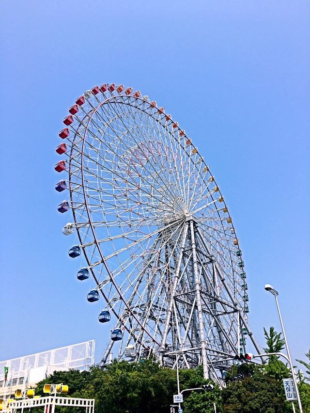 海游馆出来,我们就去了边上的天保山摩天轮,真的好大,还有全透明箱体,我们没有选择那边,一因为排队人多,二因为怕晒,三因为闺蜜恐高,我们就选择了普通的,坐一圈15分钟,能看到很漂亮的海港景色。