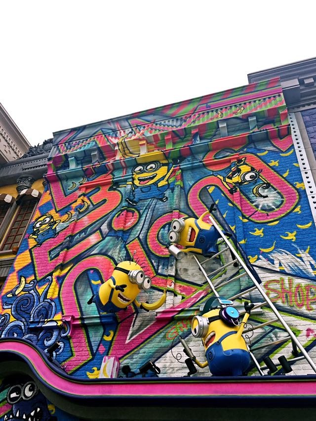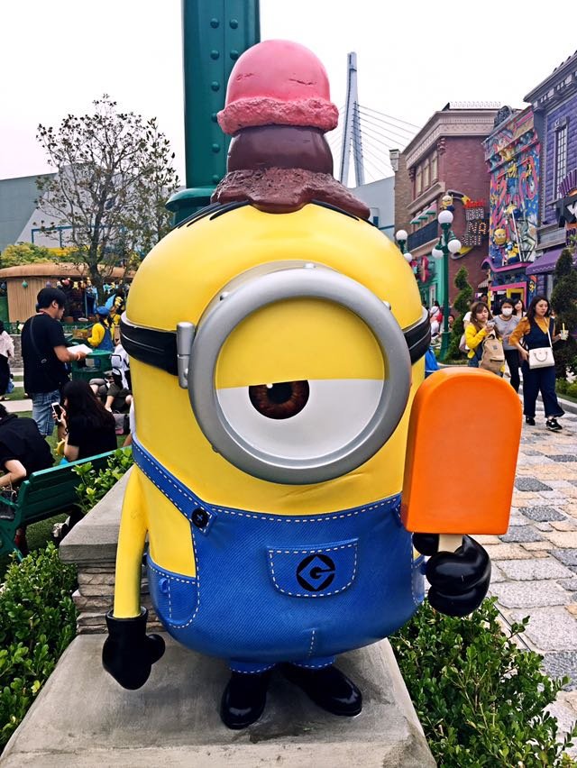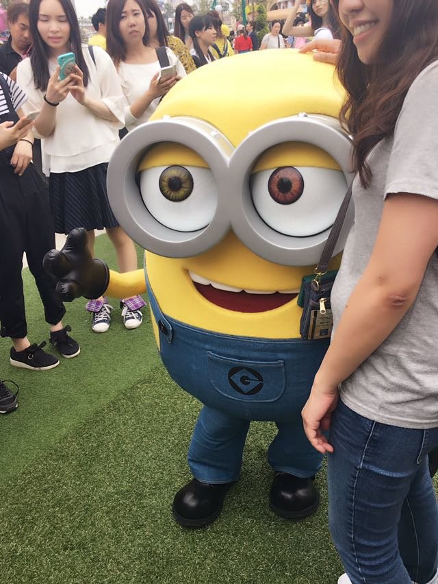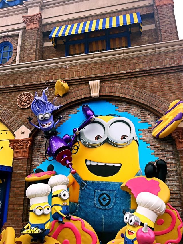 蜘蛛侠出来后我们去了大阪环球乐园新开的小黄人乐园,这个乐园目前是环球乐园里面人气最旺的,日本人民对于小黄人有着疯狂的热爱,乐园里面随处可见cos成小黄人样子的人们。(乐园里面有个皇帝装扮的放爆米花的小黄人,这个是热销产品,必须前一天预订,第二天拿着票子去换,所以,我没买到,哭。。。。。。)整个小黄人乐园呈现着欢乐的气氛,我们不停的拍拍拍。