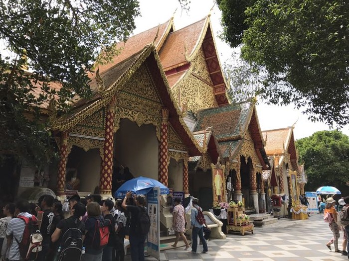 宁曼路。清迈随处可见双条车,讲完价我们就上了一辆,从艾美来回素贴山三个人500B。老实讲,越往山上路越陡峭,没一定驾驶经验还真不行。素贴山双龙寺也是清迈非常有名的景点,门票每人30B,但绝对是象征性收一下的,因为进去后,你会觉得300B都值。
