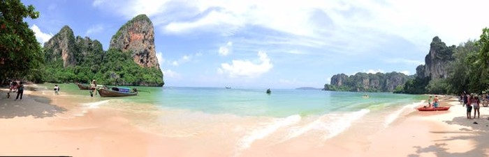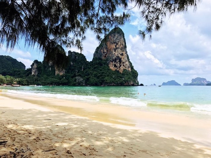 Day 6(6.9) 最后一天在甲米,我们确定了此行的最后一站:莱利湾。奥南海滩拐弯处有卖船票的地方,当天下午5点前来回每人200B。买完船票会有船司的人开车载去码头,从奥南到莱利的水上交通工具基本都是长尾船,人到一定数量后就出发,从奥南到莱利大约需要15分钟,一路的海景都很美。当天同船去的除了我们三个,其他的都是老外。