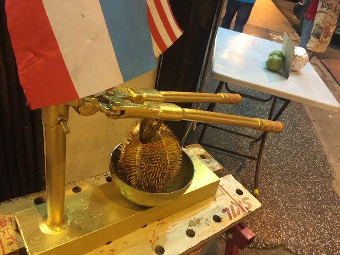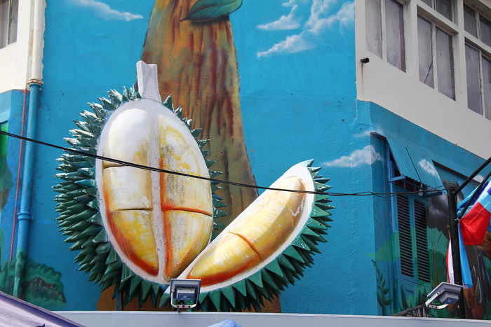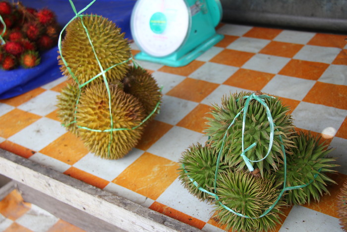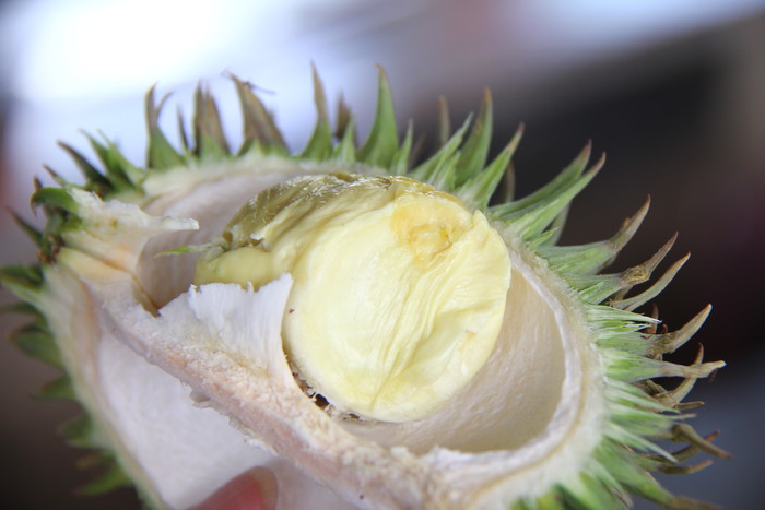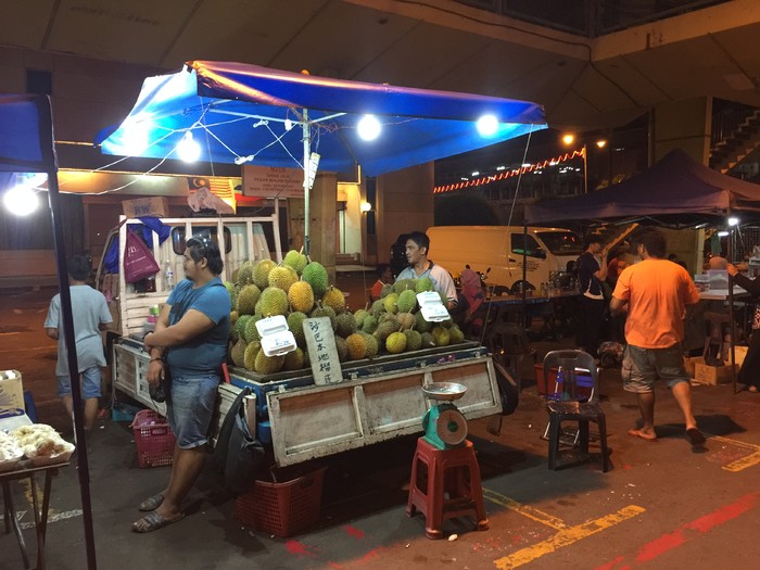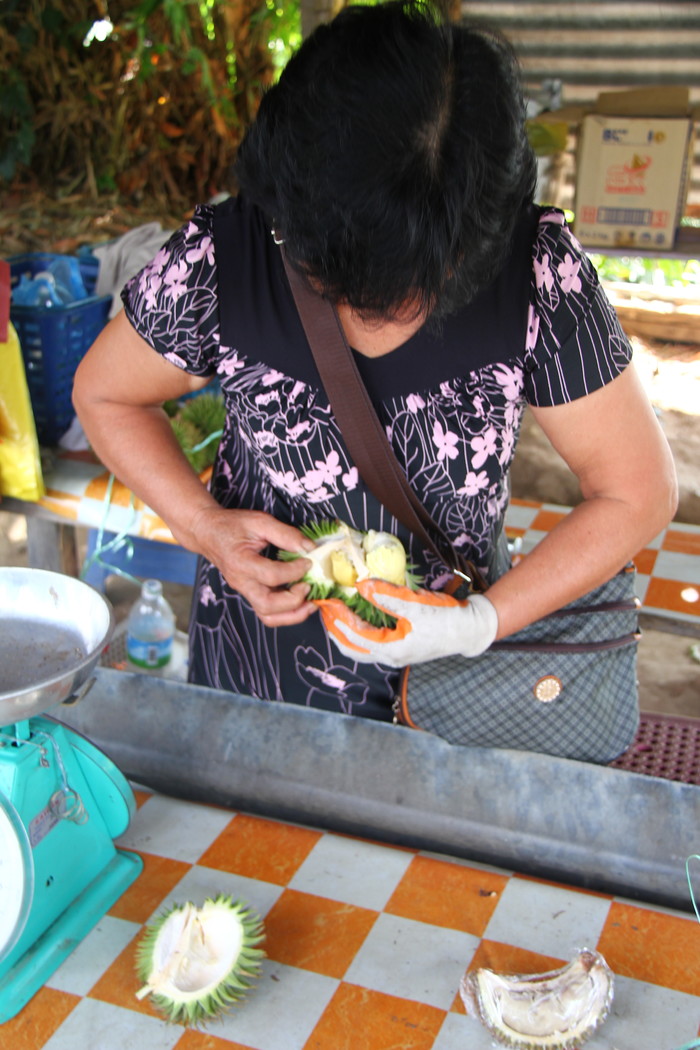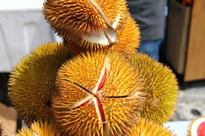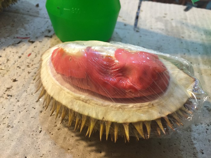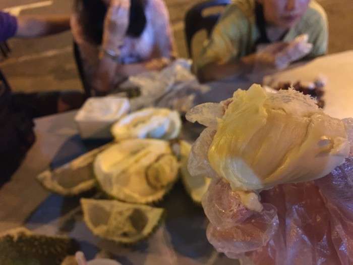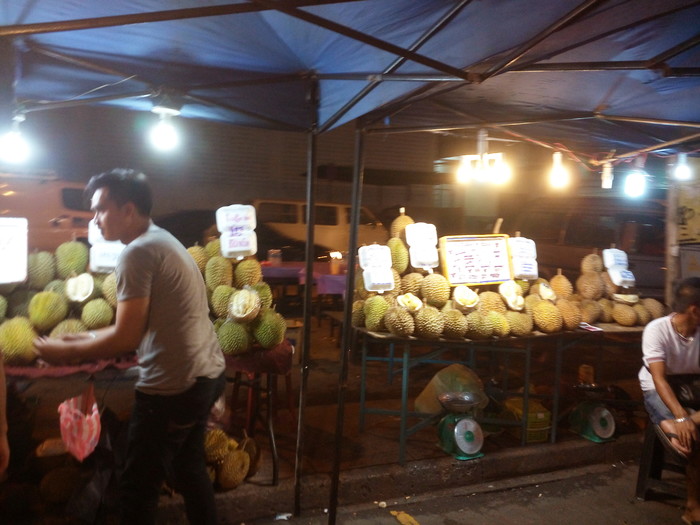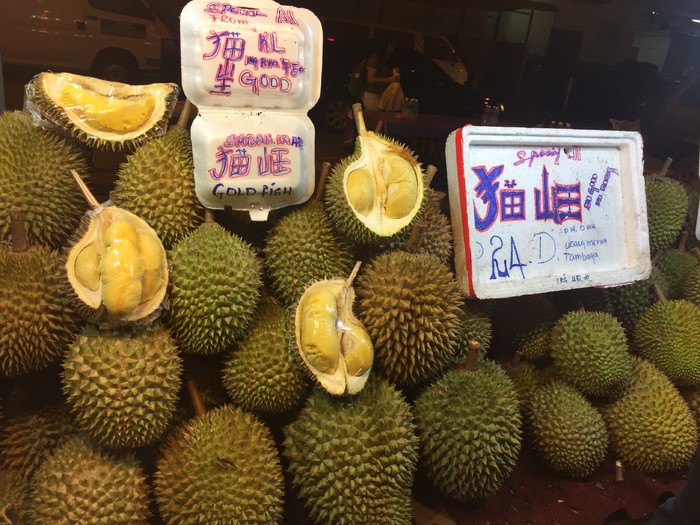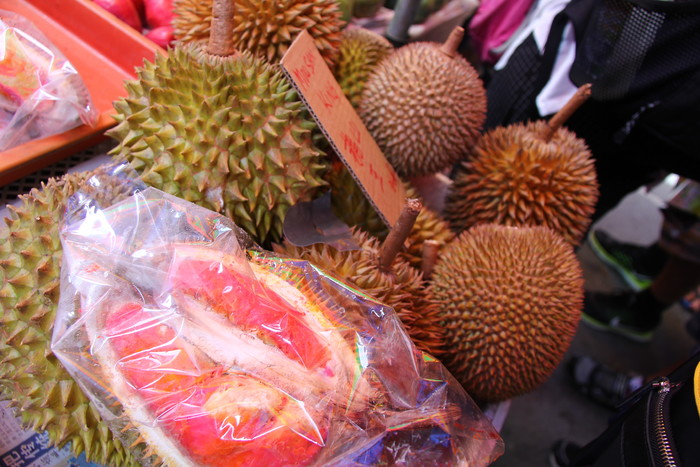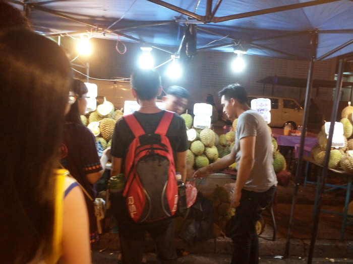 在这个巷子口,我们遭遇了第一家榴莲摊!
