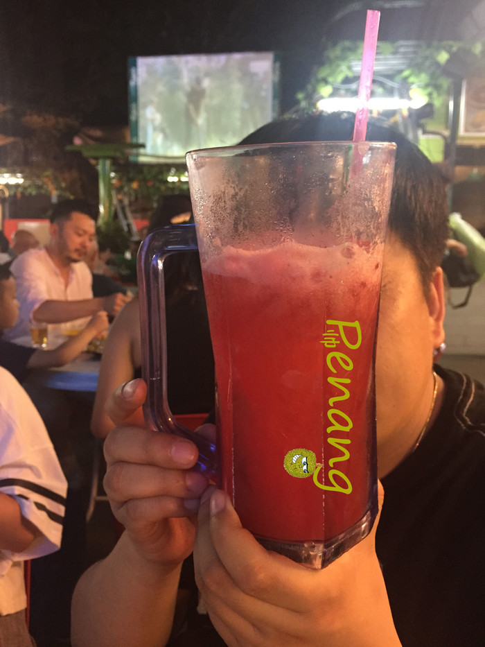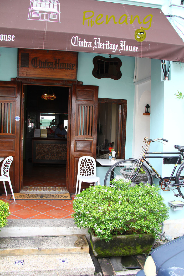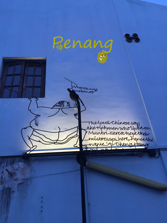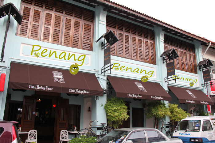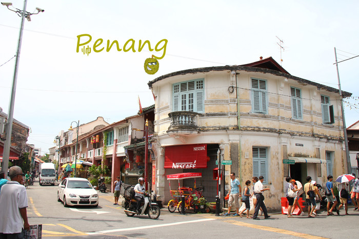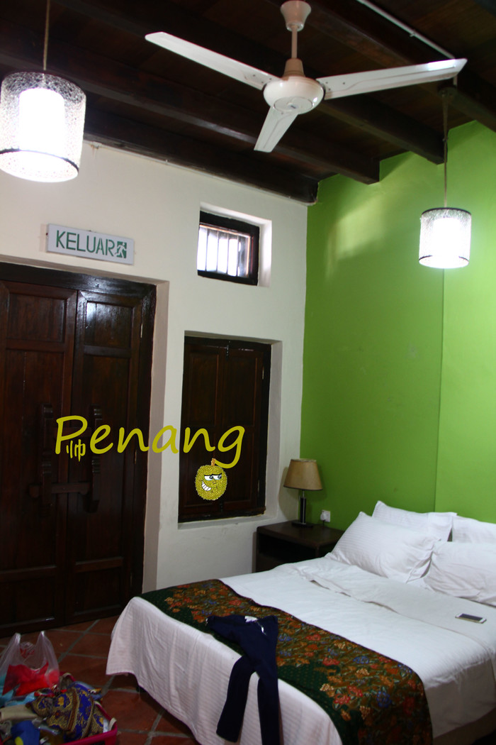 经过一阵阵旅途的颠簸,我们终于到达了槟城,因为我们有六个人,所以我订了一辆12人的中巴车!说实话,四人旅行其实是最省的,干什么都是一辆小轿车可以解决,吃东西也正好一桌,不过,朋友多的好处就是吃海鲜的时候我们能点很多很多的种类摆满一桌!哈哈,初到槟城,我选择了一间充满浓郁南洋风格的老式遗址酒店