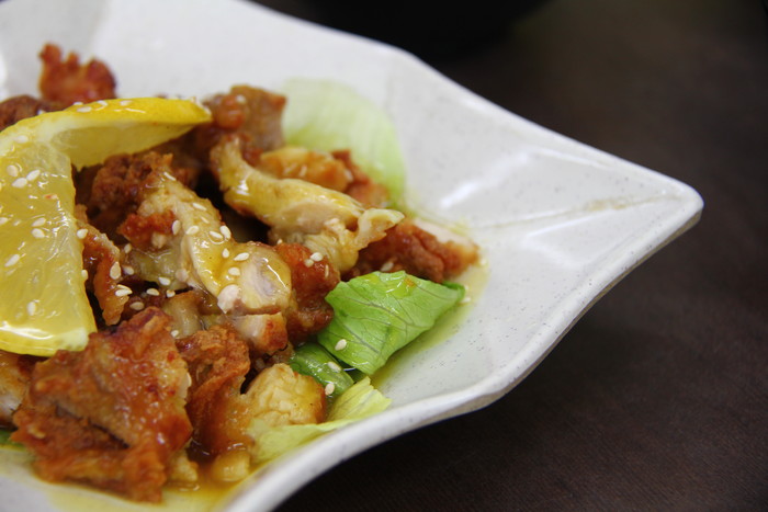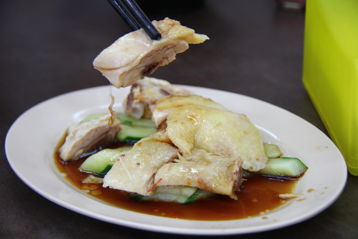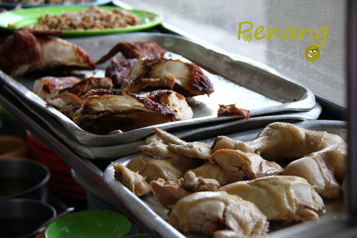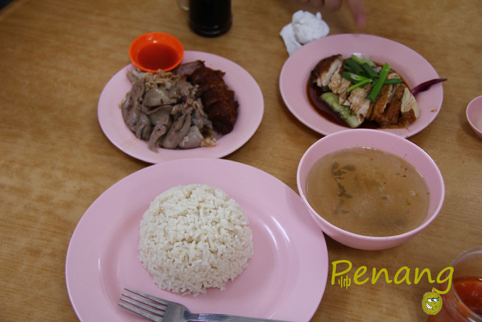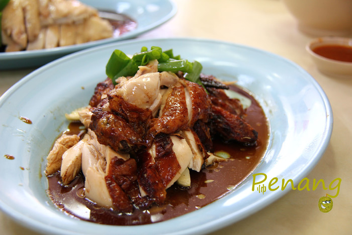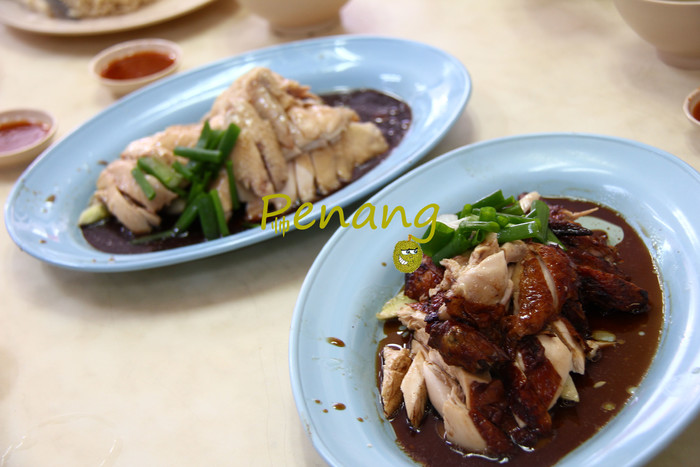 鸡饭的鸡分为两种,一是白切鸡,香嫩爽滑 ,而是烤鸡,鲜香多汁,我们有6个人啊!6个人!当然各来三份呀,老板也是经历风雨的人,一看这架势就说,也别三份了,各来半只好了!