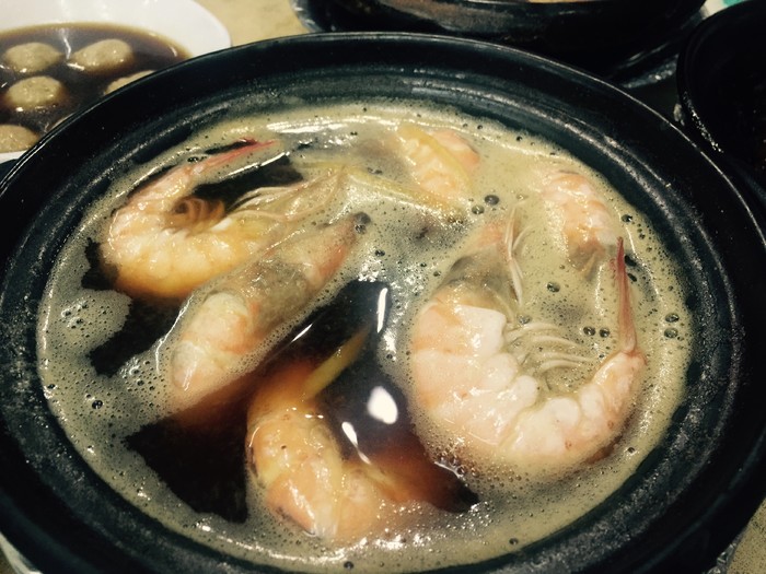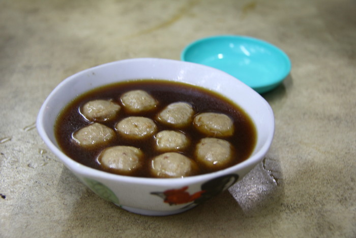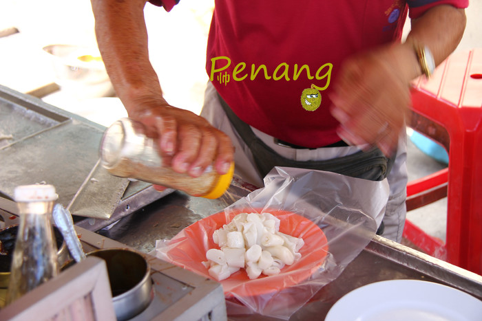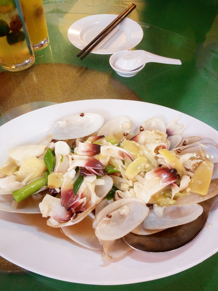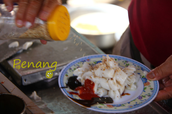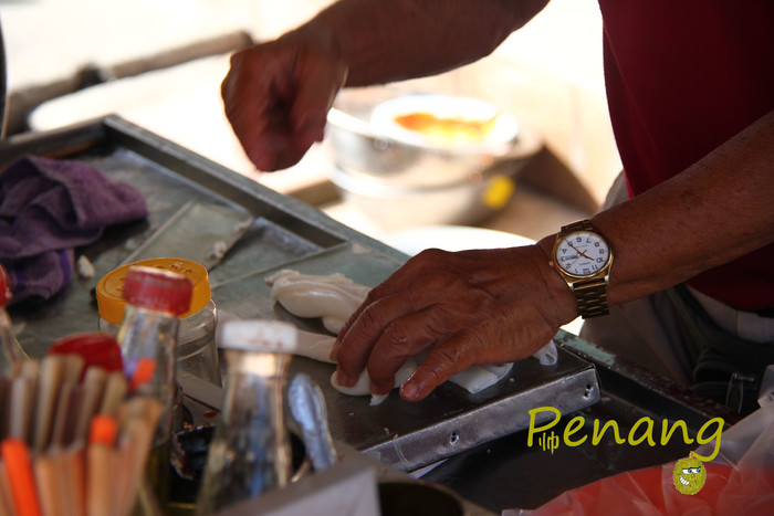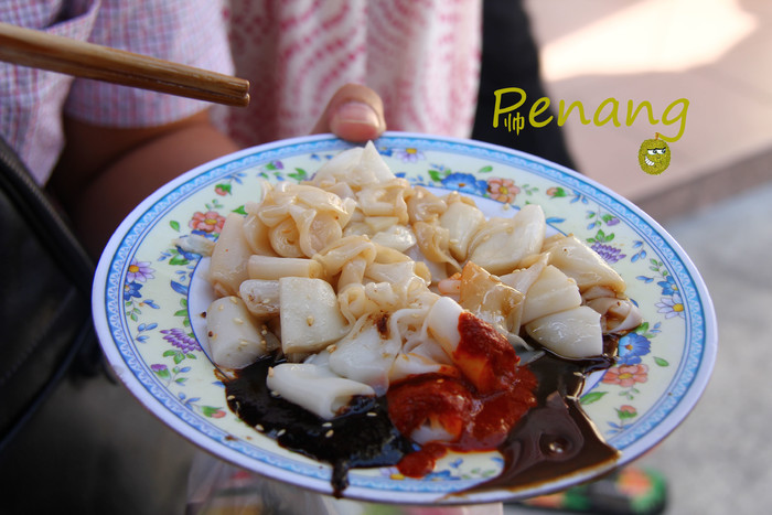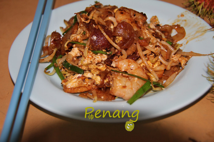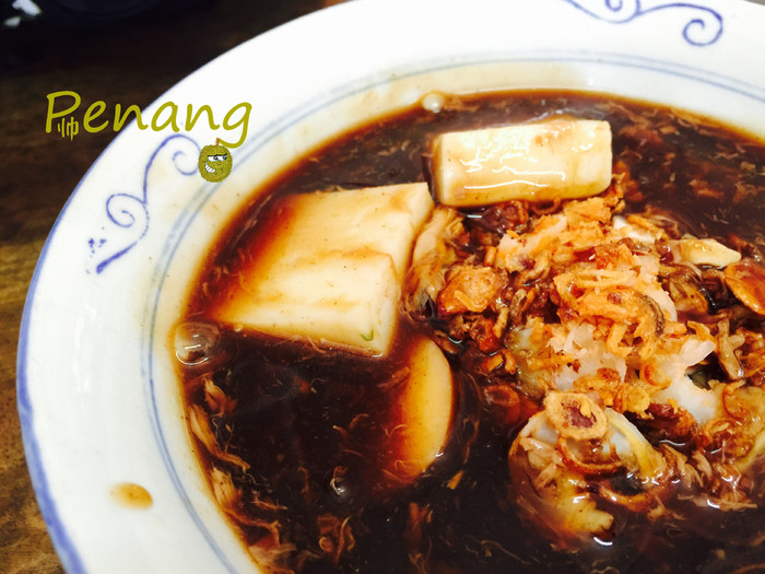 朋友点的炒粉馃,其实有点类似于炒河粉,也是福建地区传过来的吧,料多到有点喧兵夺主了,鸡蛋,香肠,豆芽,大虾,加上这边独有的黑酱油大火快炒朋友吃了半碗,我~~~吃了剩下的!哈哈~~对了,这些价格基本在六七块一碗吧。