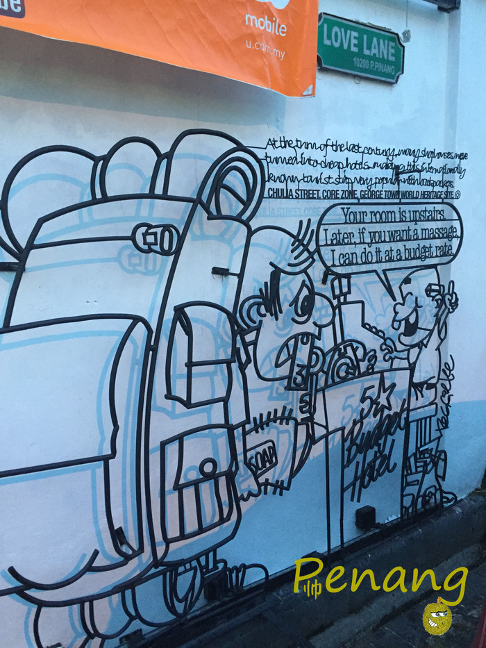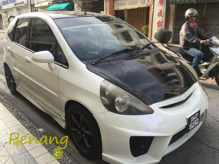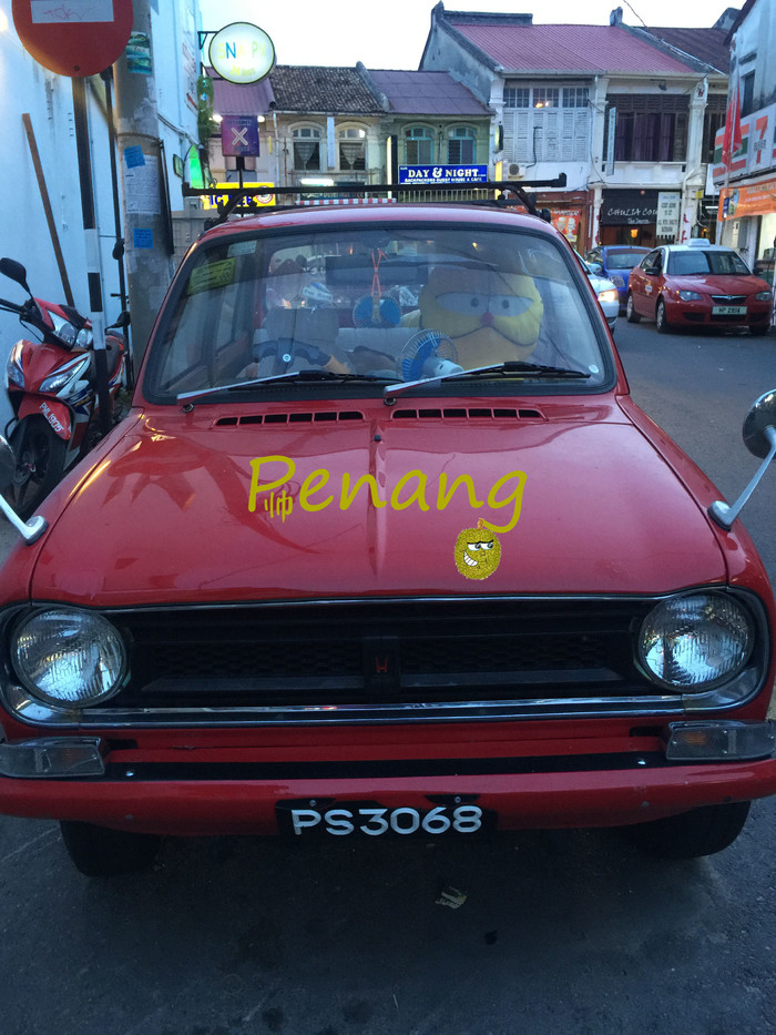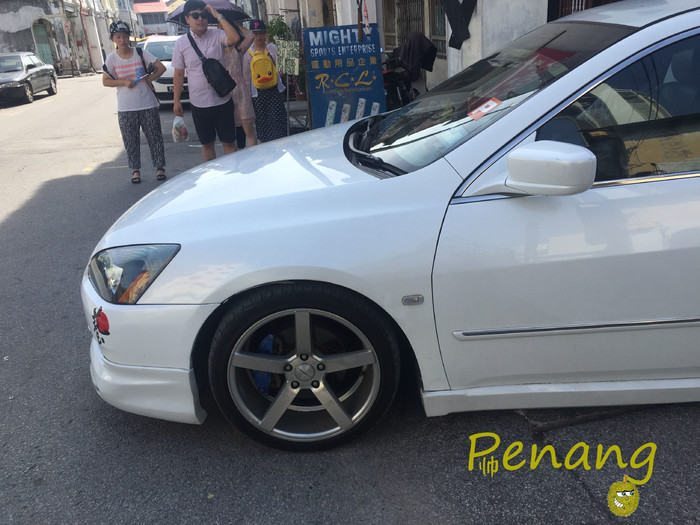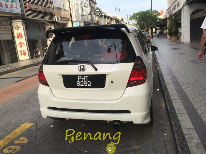 大中午的槟城古镇并不是非常的热闹,两边停满了一些日韩改装车,在这里,基本车子素车很少,感觉像个爱车人士的天堂!