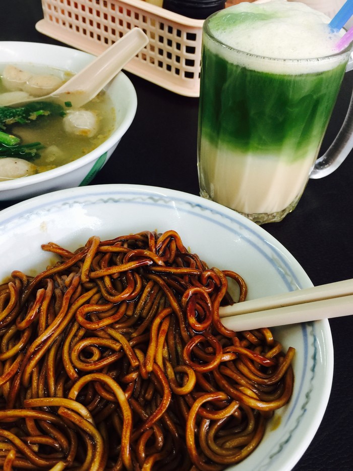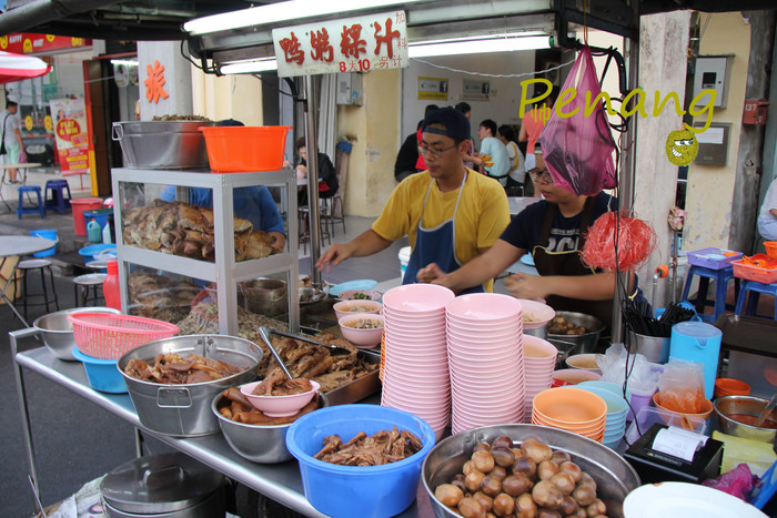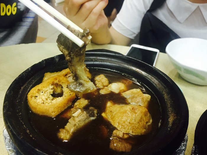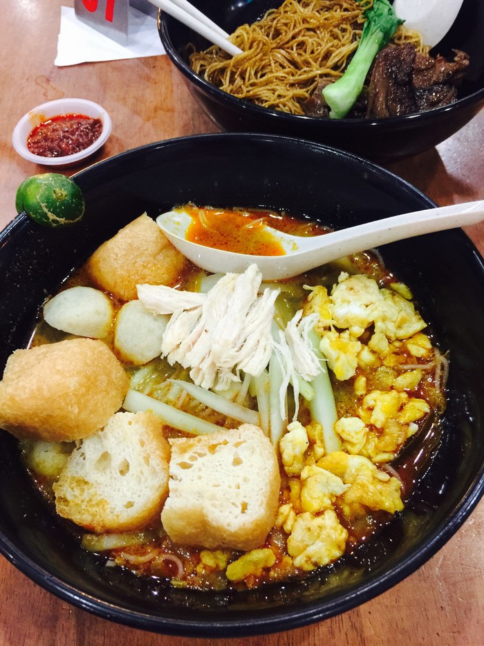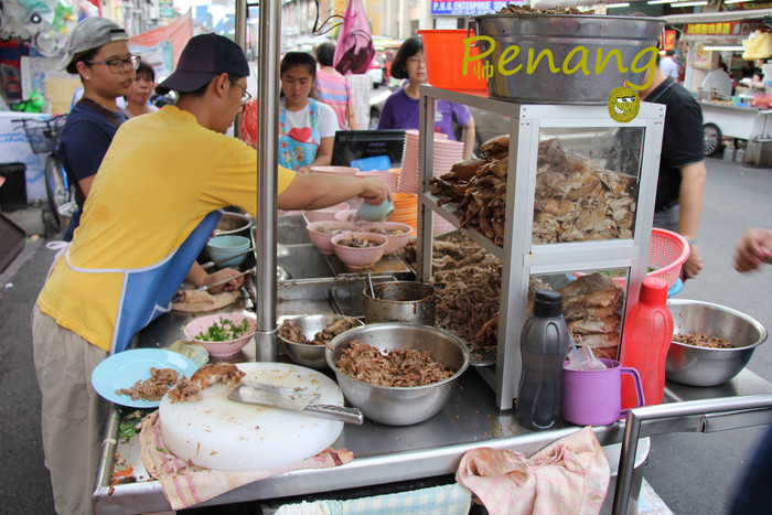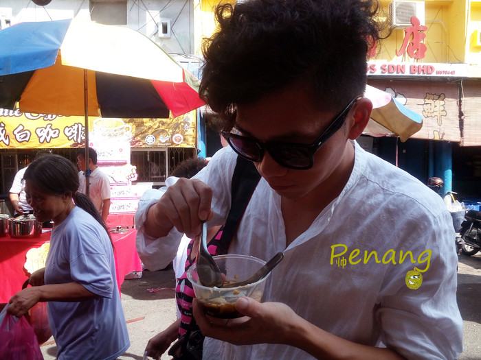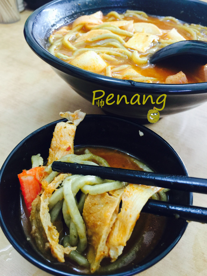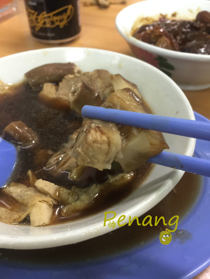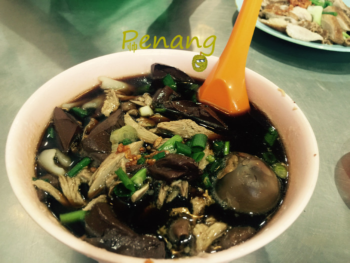 下山之后急忙来到了如雷贯耳的gaya街,第一家涉足的是冯业,为什么?因为这么晚了好多其他的都关了啊~哈哈,冯业里面选择好多 啊,生性爱面的我点了一份鸡肉捞面和叻莎。味道可圈可点,捞面比较入味,鸡肉也比较好咬,叻莎烧的中庸了点,一点也不冲,感觉为了迎合大众口味做了妥协,这家著名的好像是油炸榴莲,可惜太晚卖光了,所以改天再来吧。~~~一人一碗刚刚好~但是大晚上才吃着两碗小小的面真的是非常不过瘾,继续在街头迷失~找到了一家肉骨茶~大德古早味肉骨茶
