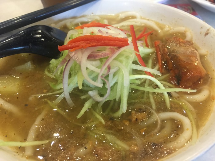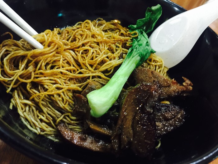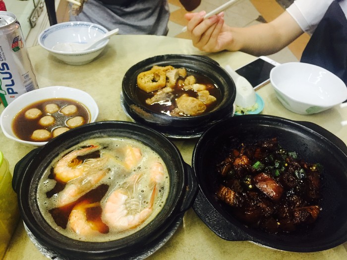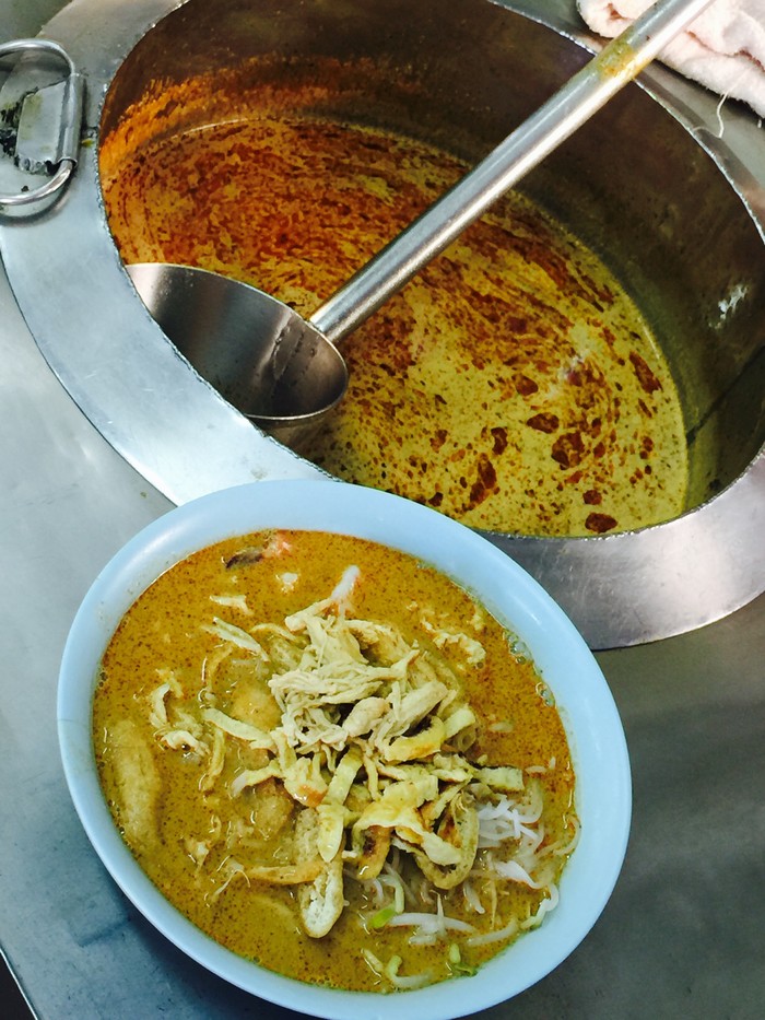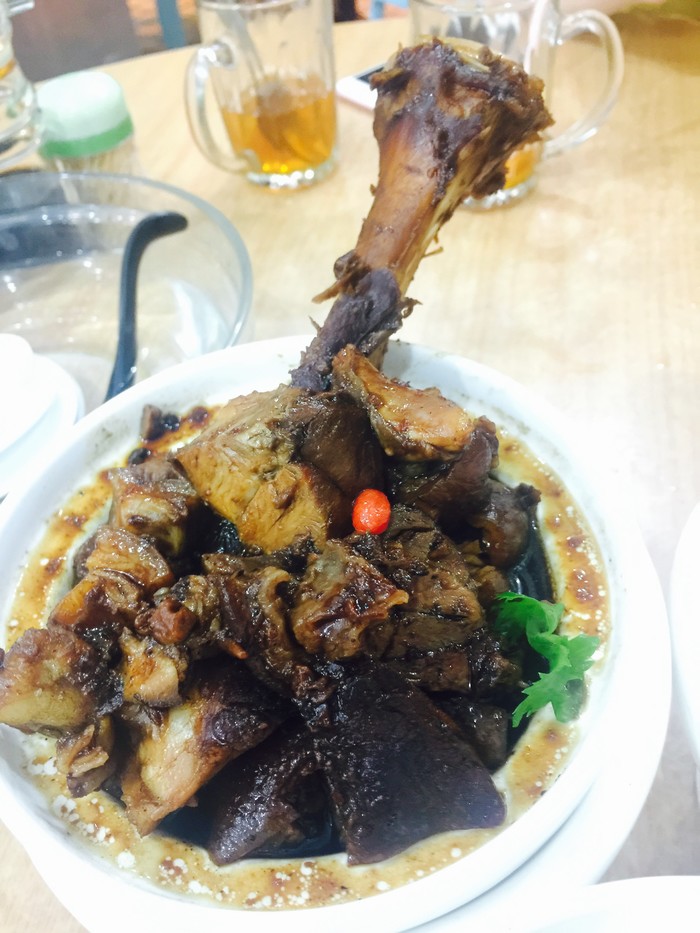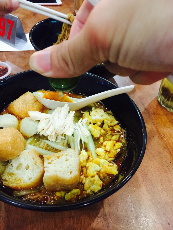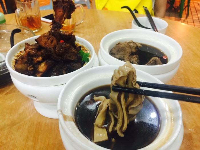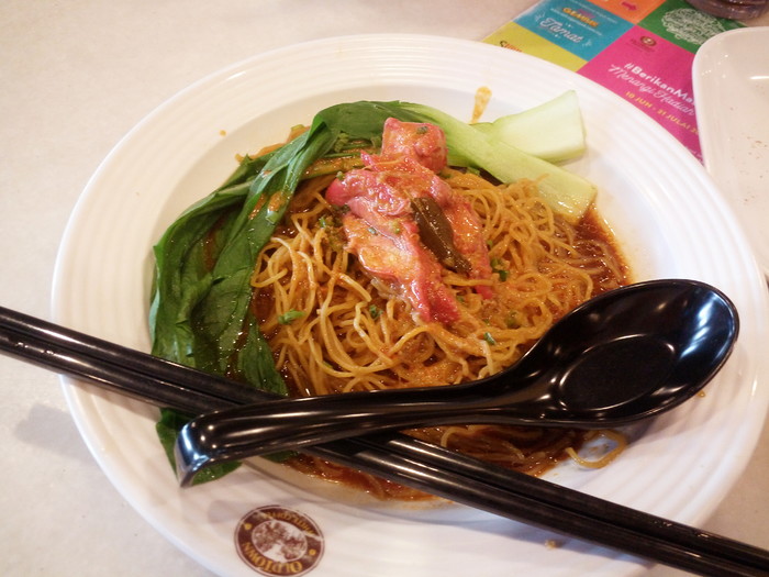 下山之后急忙来到了如雷贯耳的gaya街,第一家涉足的是冯业,为什么?因为这么晚了好多其他的都关了啊~哈哈,冯业里面选择好多 啊,生性爱面的我点了一份鸡肉捞面和叻莎。味道可圈可点,捞面比较入味,鸡肉也比较好咬,叻莎烧的中庸了点,一点也不冲,感觉为了迎合大众口味做了妥协,这家著名的好像是油炸榴莲,可惜太晚卖光了,所以改天再来吧。~~~一人一碗刚刚好~但是大晚上才吃着两碗小小的面真的是非常不过瘾,继续在街头迷失~找到了一家肉骨茶~大德古早味肉骨茶