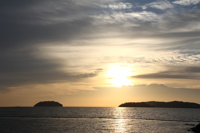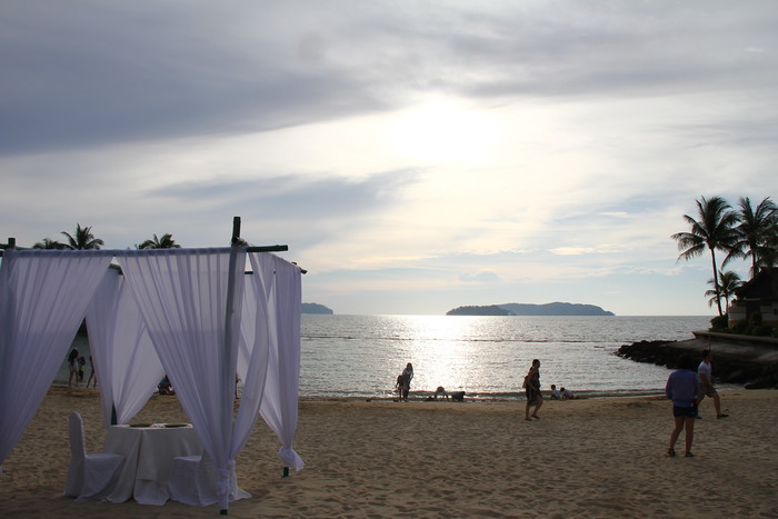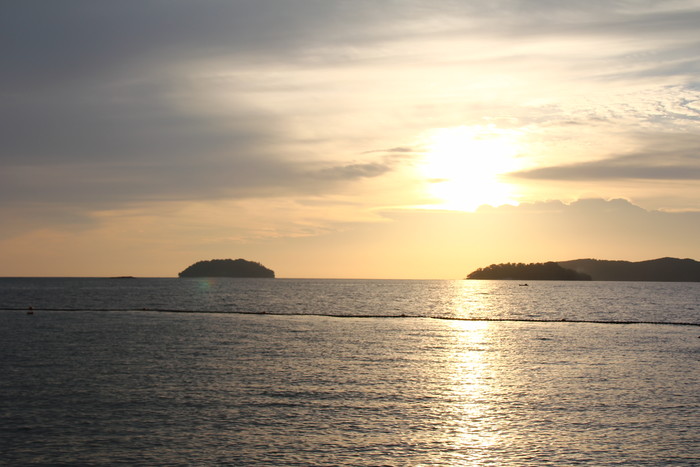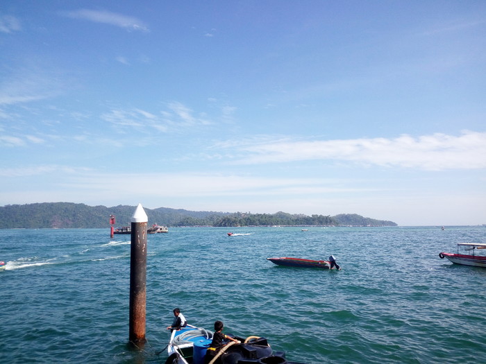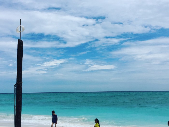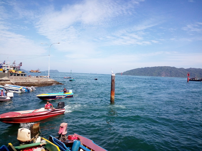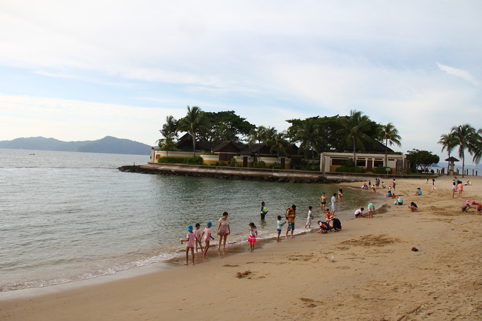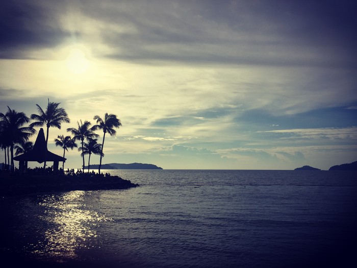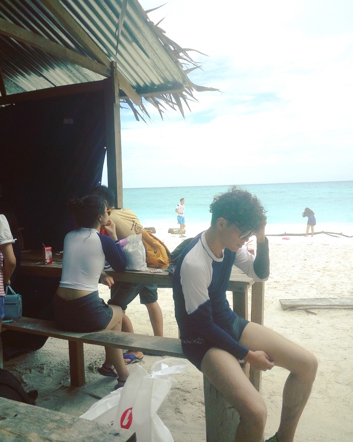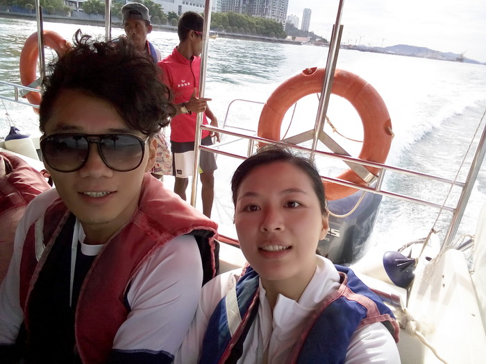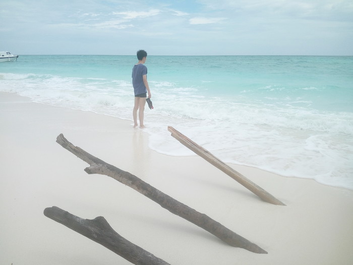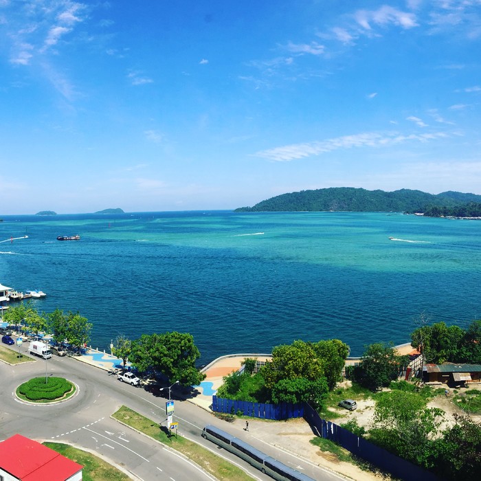 今天起了个大早去出海。海岛的确去了不少,但是今天非常特别,因为对于环滩岛非常仰慕,主要还是因为看了xfun的航拍画面,对于那近乎马代的海水痴迷万分,所以淘汰了美人鱼岛,坚决转战环滩,虽然环滩的价格稍微还贵一点。给大家科个普,环滩属于私人岛屿,近两年才开放,而且对于亚庇来说还算不远,在我们下塌的gaya centre hotel过去码头只要十几分钟,然后理论上坐一小时的船差不多就到了。而对比跋山涉水的美人鱼岛,一来路途遥远,半天的路程,加上被众多游客污染的环境,显得不是非常的有逼格~~哈哈。再来说说这个环滩岛,因为是个私人岛屿,所以岛上的公共设施并不是非常的全面,基本只有一处完善的码头和休闲区,包给一家指定的旅游公司运营,所以一日游的价格非常坚挺,在500以上,想想这个价格在越南可是能做好几次深潜了哦!如果只为了看环滩,对于辅助服务不是很在意的话,可以选择非直接授权的旅游公司,一日浮潜游价格在400以内,区别在于,你不能在主码头登录,要在环滩岛其他海滩登录,然后中饭就是他们自带的海滩BBQ了,也算挺有一番风味的!当然,我选的是后者。哈哈。可惜天公不作美,一起床,妈的天就下起了大雨