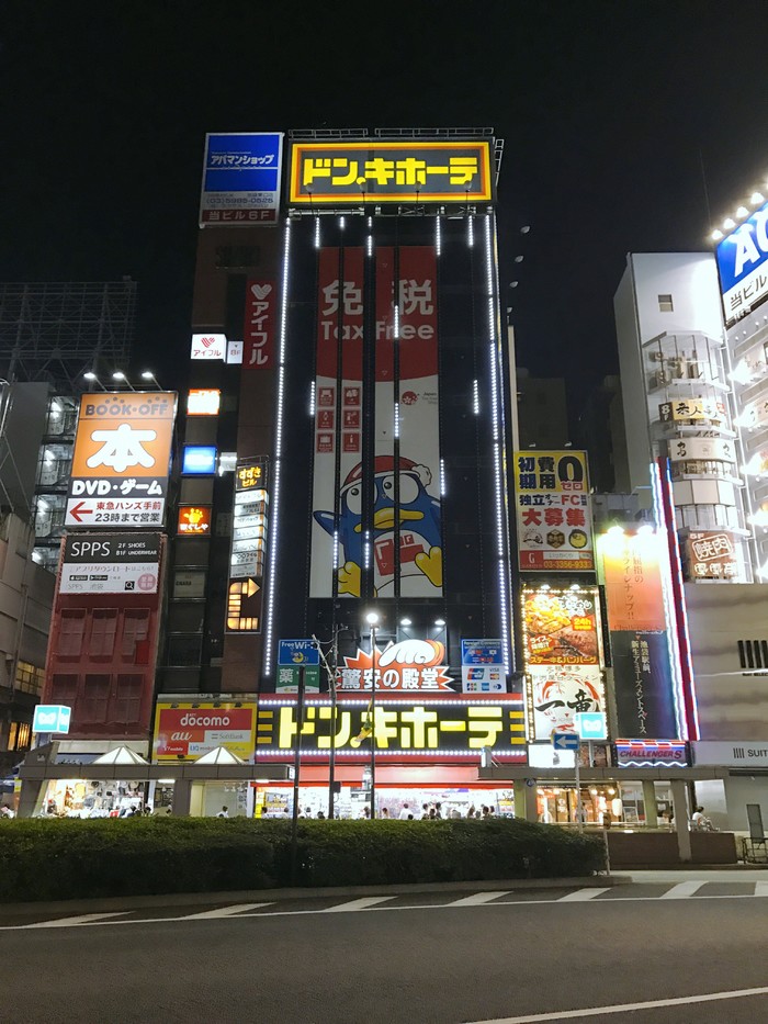 打卡拍了个照之后直接折返去堂吉诃德。看惯了日式杂货店清爽简洁的陈列风格,堂吉诃德的货品陈列像我们这的十元店一样凌乱,货品堆得恨不得冲破天花板。但是能叫得出牌子的都是正品,在日本贩售假货后果很严重。他家24小时营业,不怕没地方花钱。虎牌儿童水壶比big camera贵,日立N4000在做活动,只要一千人民币左右,果断拿下。攻略写完我也要好好安利一下日立4000。