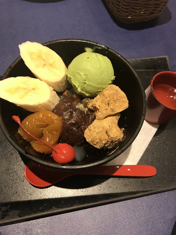 到了民宿稍作休息之后,本想去吃念念不忘的玄品河豚,但初来乍到怕找不到路,就到东武百货的不二家填肚子。就是生产棒棒糖的那个不二家,成田机场也有。套餐好吃,甜品里的红豆泥太齁了。