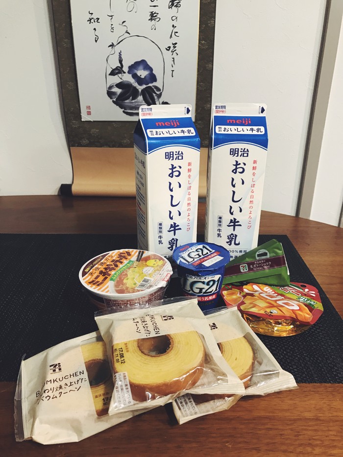今晚的零食时间,我们住处边上有7-11,罗森,还有另外两间我没注意名字,每天换着便利店买。