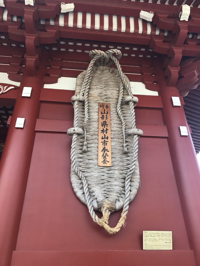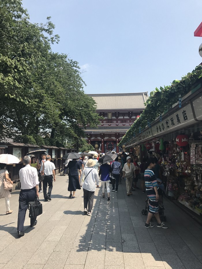 一般都会从雷门开始游览,进入雷门之后,这一条街叫做仲见世商业街,是日本最古老的商业街,也是参拜浅草寺的必由之路。路的两边是各种店铺,摆着琳琅满目的商品,但是质感都不太好,像是义乌批发来的。这两排店铺旁边还各藏着一排店铺,主要是吃的。