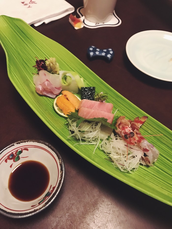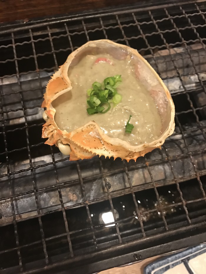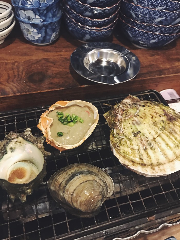 烤蟹斗超级推荐,加了味噌,吃起来特别香。墨鱼干和玉子烧是免费送的,我直接吃了,看其他日本人是在网子上烤着吃。海鲜都是筑地直送,算是为东京之行画上完美的句号。