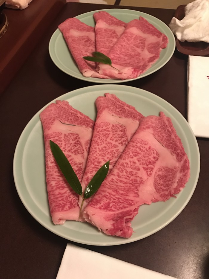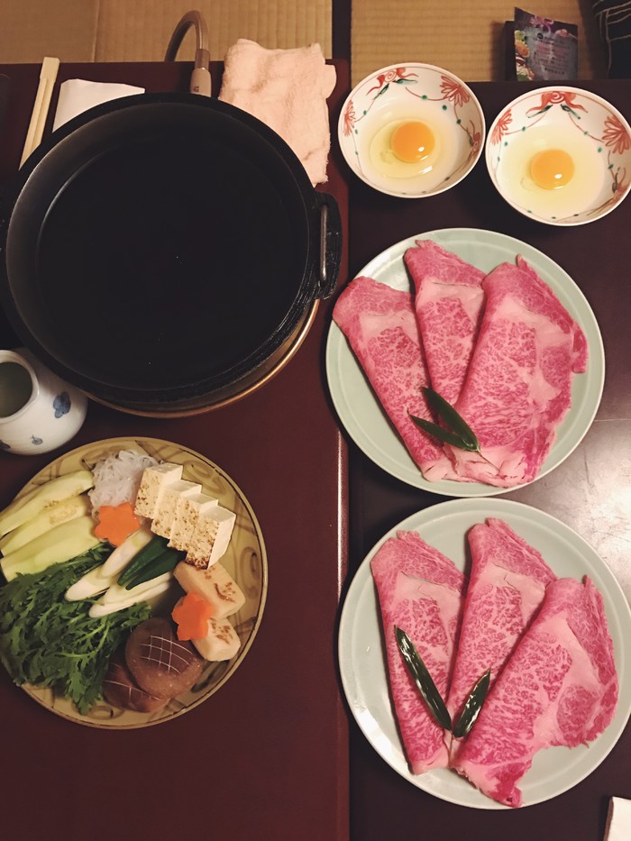 晚餐吃的是人形町今半,提前半个月让房东帮我们预订。和其他今半分店不一样,人形町总店有一百多年的历史,是独立的一座房子,进门脱鞋,全程跪式服务。价格也是很"跪",人均1000+RMB。