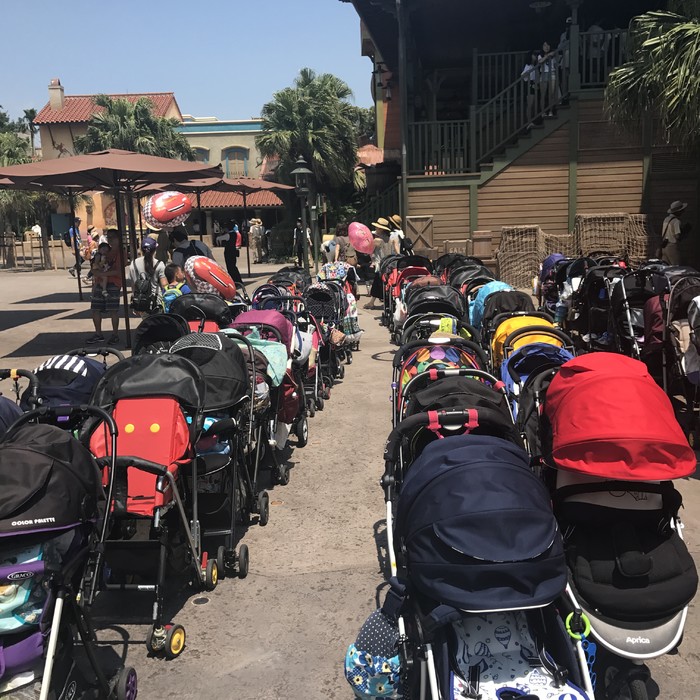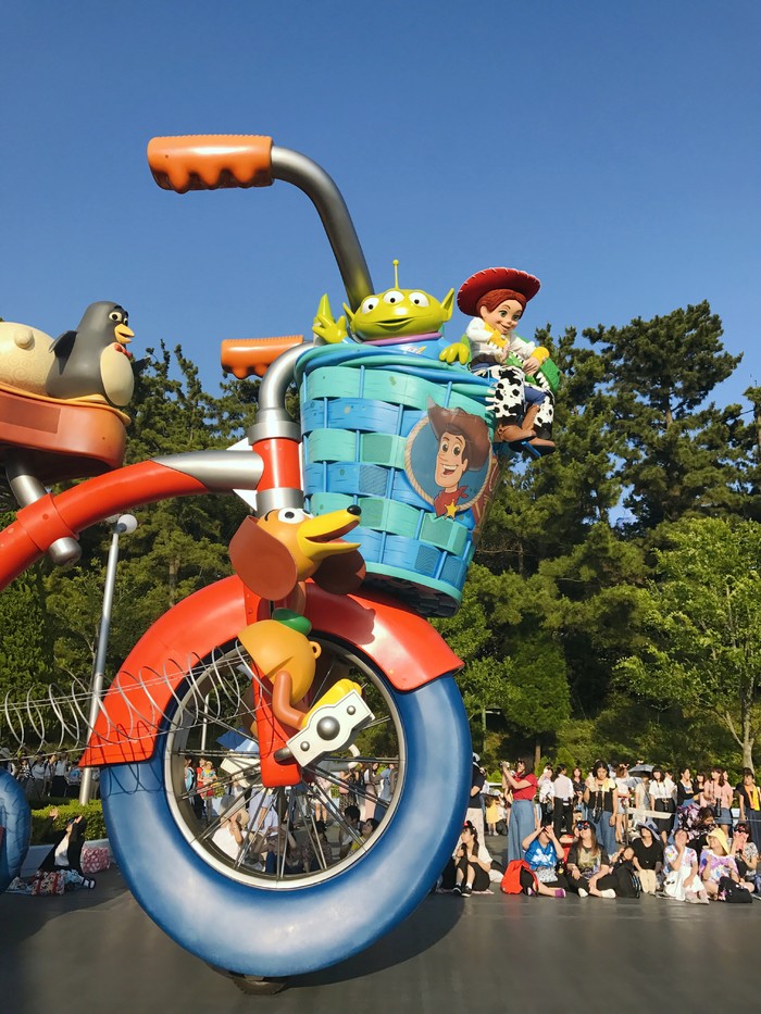 今天的游行是下午四点半,我们正好在巴斯光年那边的餐厅吃饭,抢占了一个有利地形。不少人三点多就顶着大太阳占位子,佩服佩服。