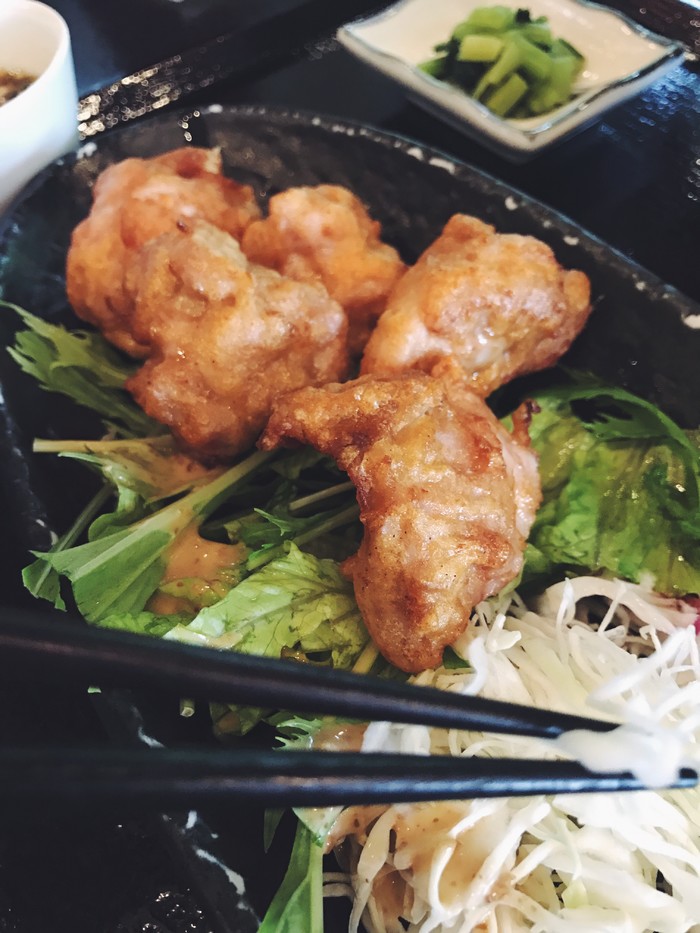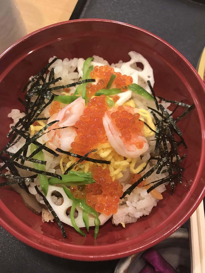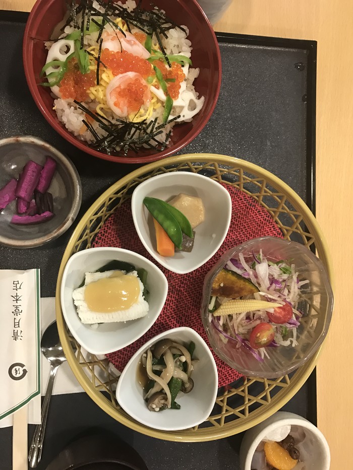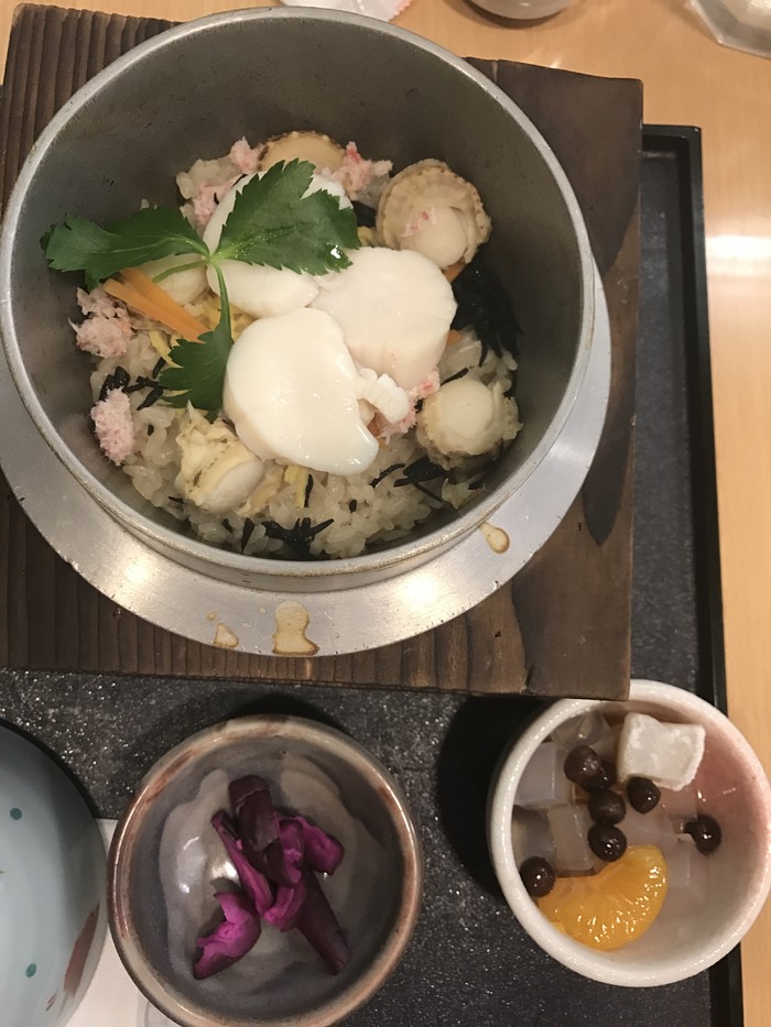 挑了一家釜饭作为中饭,等位的时候旁边的日本老太太和我搭讪。我告诉她我们是中国人,来日本旅游。老太太说中国很有意思。