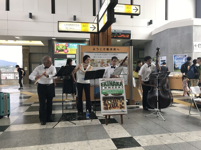 下车往出站口走,碰到现实版"轻井泽四重奏",应该是为他们的演奏会做宣传。