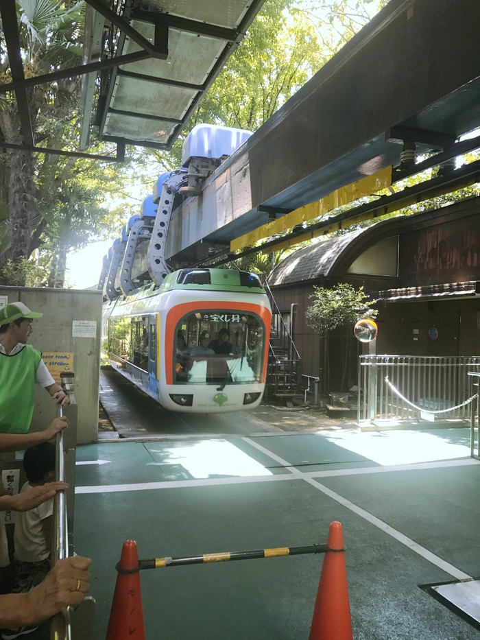 这个电车连接动物园的东园和西园,因为地形的关系,园区里没办法铺轨道,于是就产生了这种悬吊的电车。车票另外付费。