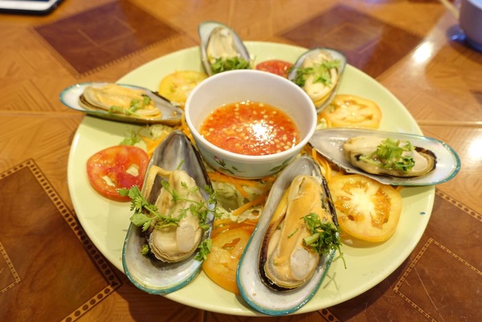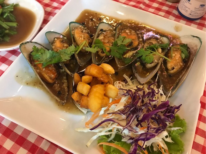 溜了一圈选在这边吃,点了蒜蓉青口,香辣鱿鱼,蒜蓉烤大虾。味道很好哦,特别是这个虾,很入味,好吃