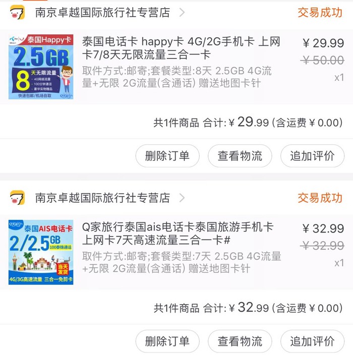 也是万能的淘宝搞定,买了Ais和happy,抵达后插上卡就能使用,很方便!