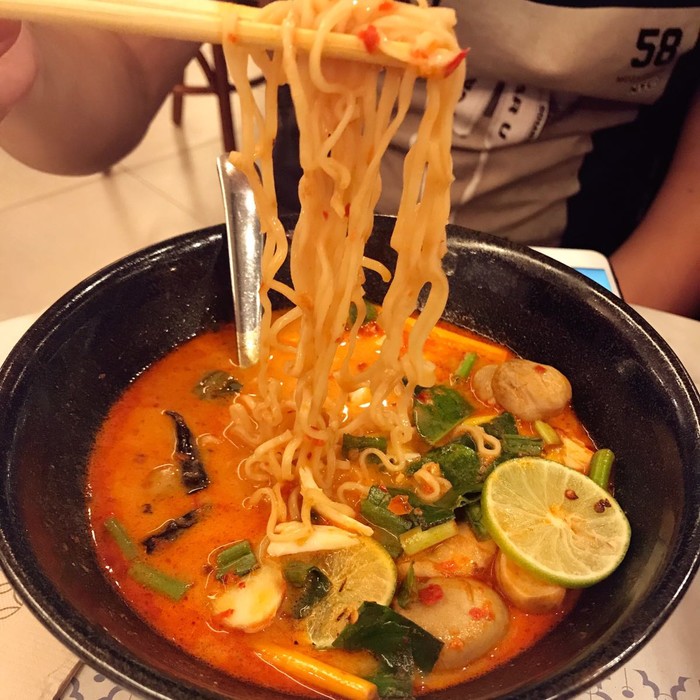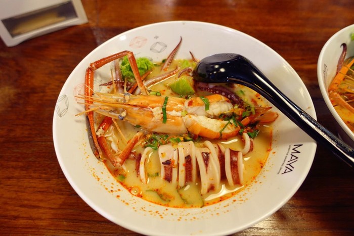 负一楼好多美食,这个海鲜面超级无敌好吃呀,里面的鱿鱼是我在泰国吃过最好吃的,现在想起来口水都流了