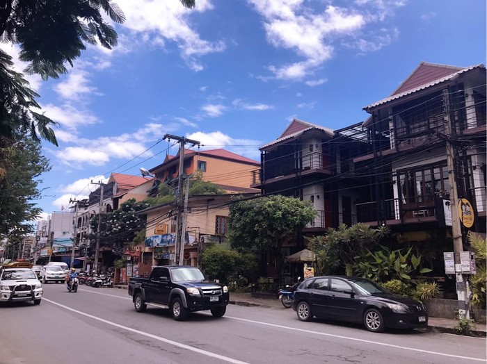 在酒店吃过早餐后就出发去双龙寺,双龙寺在素贴山上,所以去双龙寺要在清迈大学门口坐双条上山,小明用谷歌看了一下,我们酒店离清迈大学很近呢,所以我们索性就步行过去了,走在清迈的街头,好好地感受一下这座微笑之城!
