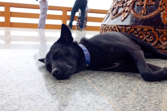一片金灿灿的,进去寺庙要赤脚,鞋子就放在门口一颗大树下,你会看到一大片鞋子,我俩还开玩笑道:出来发现鞋子没了,赤脚下山