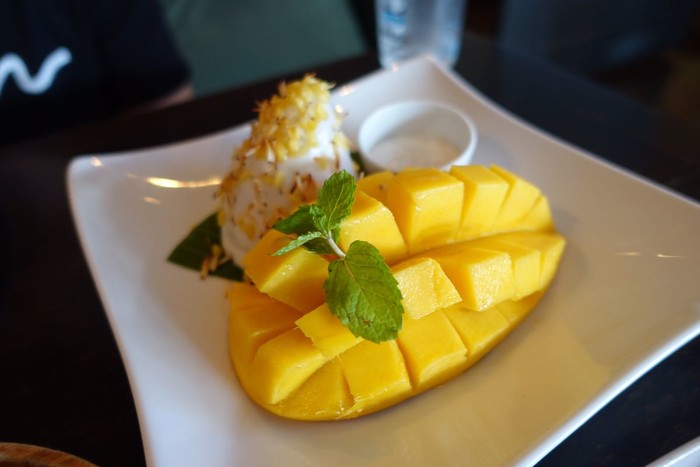 左右,包含10%服务费,性价比不高,分量少,我这大胃口根本吃不饱!又跑到Big c 对面买了一份榴莲吃
